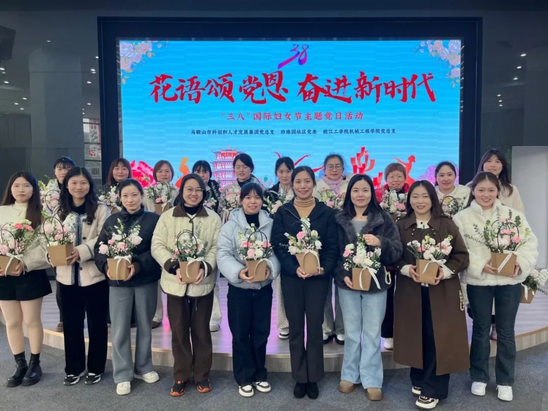 3月6日,在第115个“三八”国际妇女节到来之际,市科创和人才发展集团联合珍珠园社区、18新利怎样在市青年创新创业园开展“花语颂党恩 奋进新时代”主题党日活动。市科创和人才发展集团、珍珠园社区、18新利怎样机械工程学院女性党员、职工20余人参与。