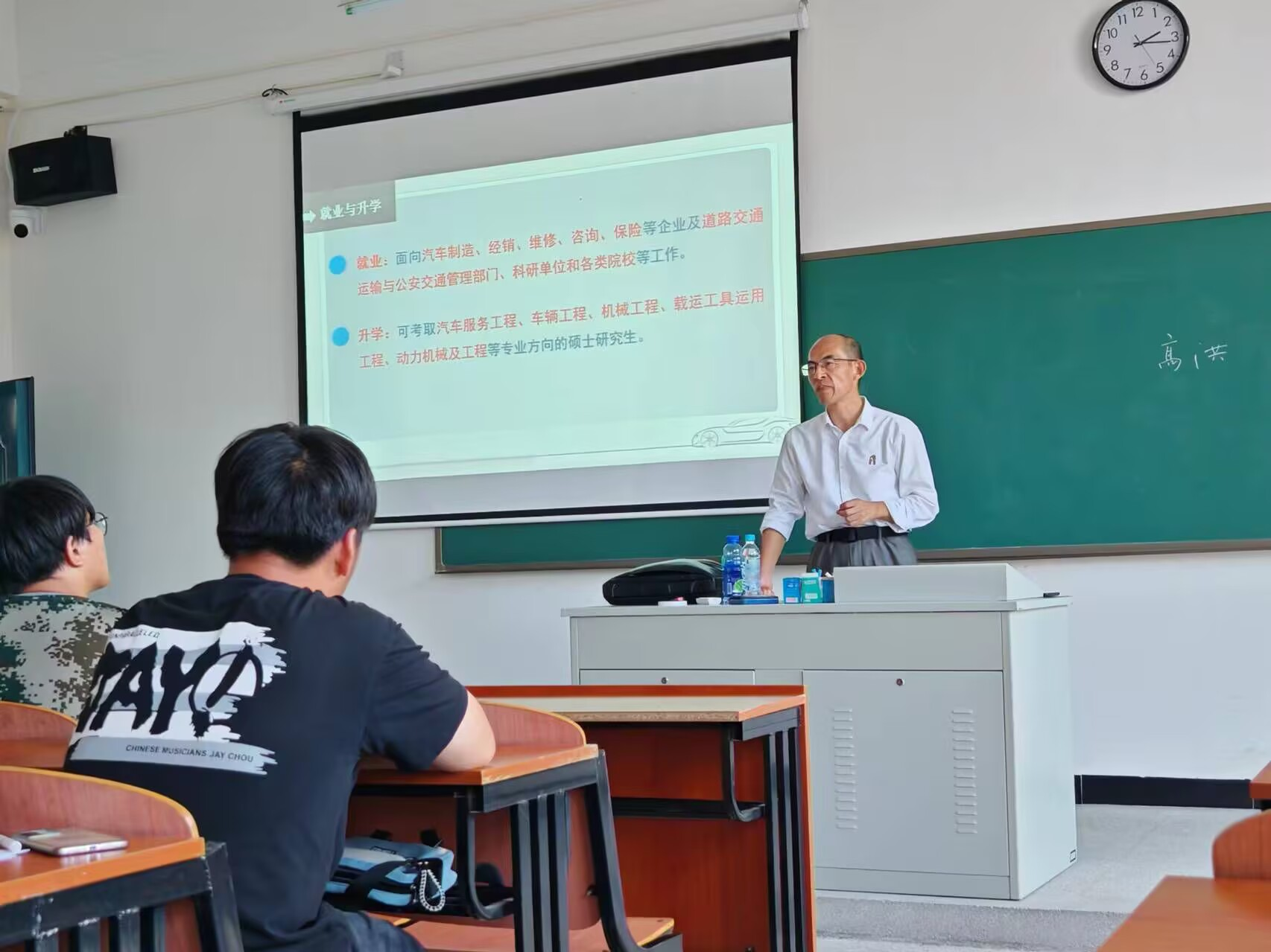 讲座伊始,高洪教授对汽车服务工程专业进行了全面而深入的介绍。他详细阐述了该专业的广阔发展前景,指出随着汽车行业的飞速发展,汽车服务工程领域的需求日益增长,涉及汽车销售、维修、保险、金融等多个方面,为同学们展示了未来广阔的就业空间和职业发展路径。这让新生们对自己所学专业有了更清晰的认识,也对未来充满了信心。