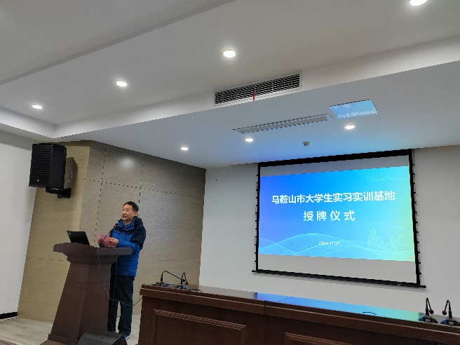 2024年11月27日上午,机械工程学院在安徽省亚威机床制造有限公司举行马鞍山市大学生实习实训基地授牌仪式。出席本次活动的有博望区人才发展研究中心主任陶承林,18新利怎样机械工程学院院长朱天宇,马鞍山市科创和人才发展集团有限公司副总经理许小娟,安徽省亚威机床制造有限公司副总经理张云霞,18新利怎样机械工程学院教研室主任陈田,安徽省亚威机床制造有限公司相关职能部门的领导,机械工学院教师代表和机械工程专业23名学生。此次活动旨在加强学校、政府与企业之间的深度合作,为大学生提供更广阔的实习平台和就业机会。