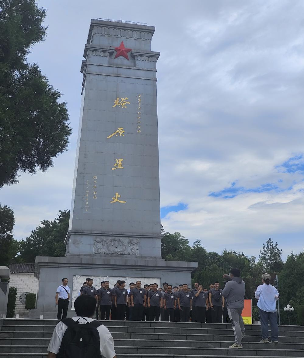 8月1日上午,我们来到了金寨县烈士纪念馆,踏上了243级台阶,观摩了退伍老兵们献花篮和宣誓。绵延的青翠群山与清澈的水流瀑布中,一抹鲜艳的红色矗立在巍峨山顶。红星广场的石碑上,“燎原星火”几个大字经峥嵘岁月的沉淀更显苍劲有力,金寨县革命博物馆中诉说着激昂而又悲壮的历史,金寨县烈士纪念馆内安置着沉默而又庄严的英魂。