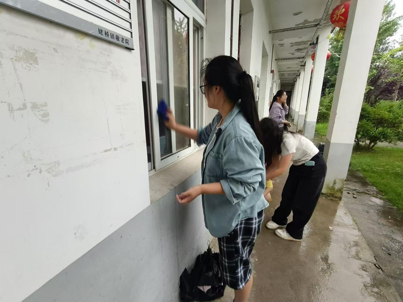 凝聚每一份爱,点亮每一颗心。志愿学子们自发为老人整理衣柜、打扫房间,在一番精心的清扫后,养老院的环境焕然一新。