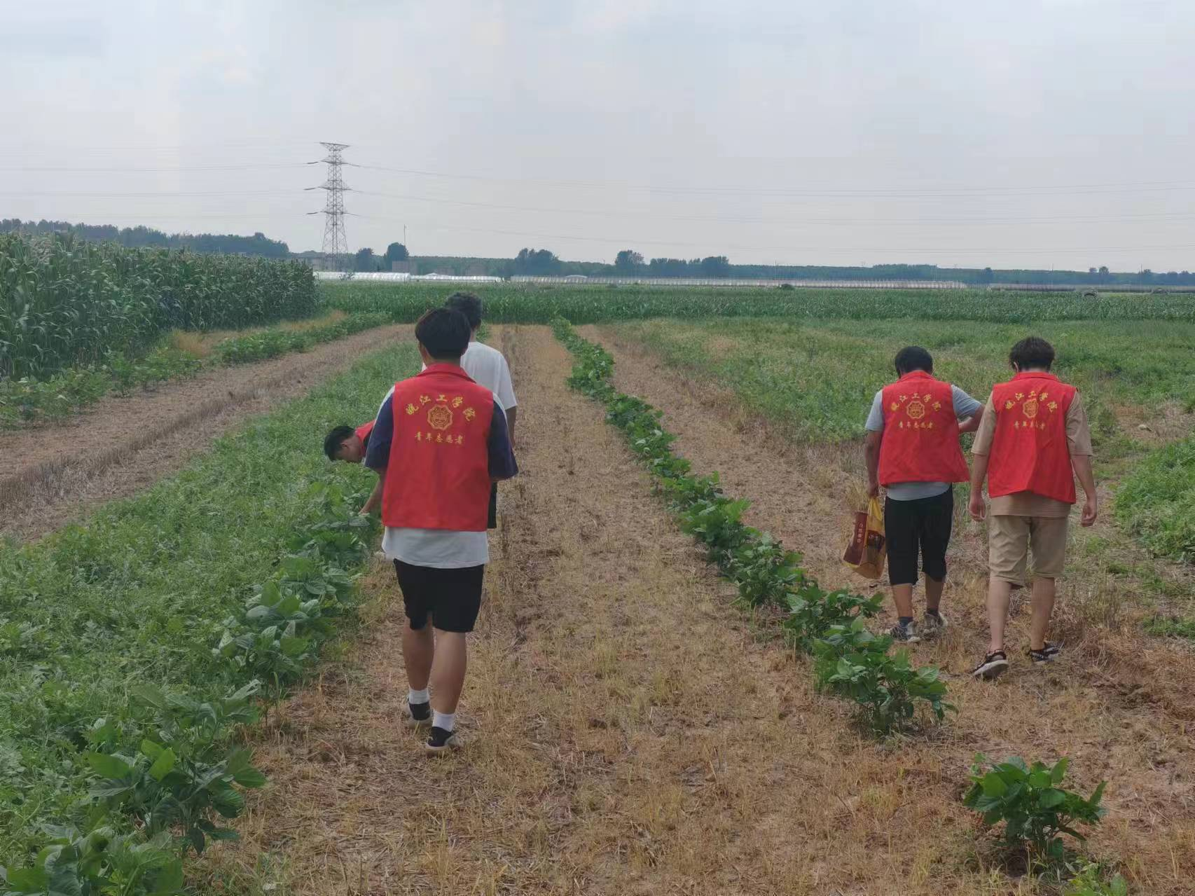 小组人员在动员之后骑电动车前往实践地点,对西瓜地、大豆地以及其他农作物的长势进行观察。