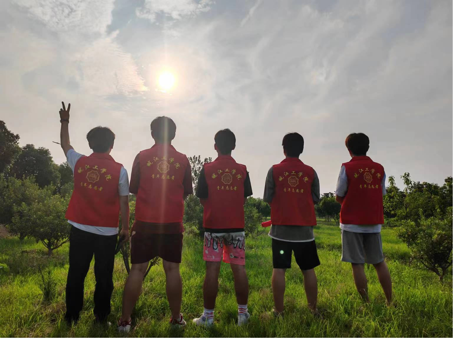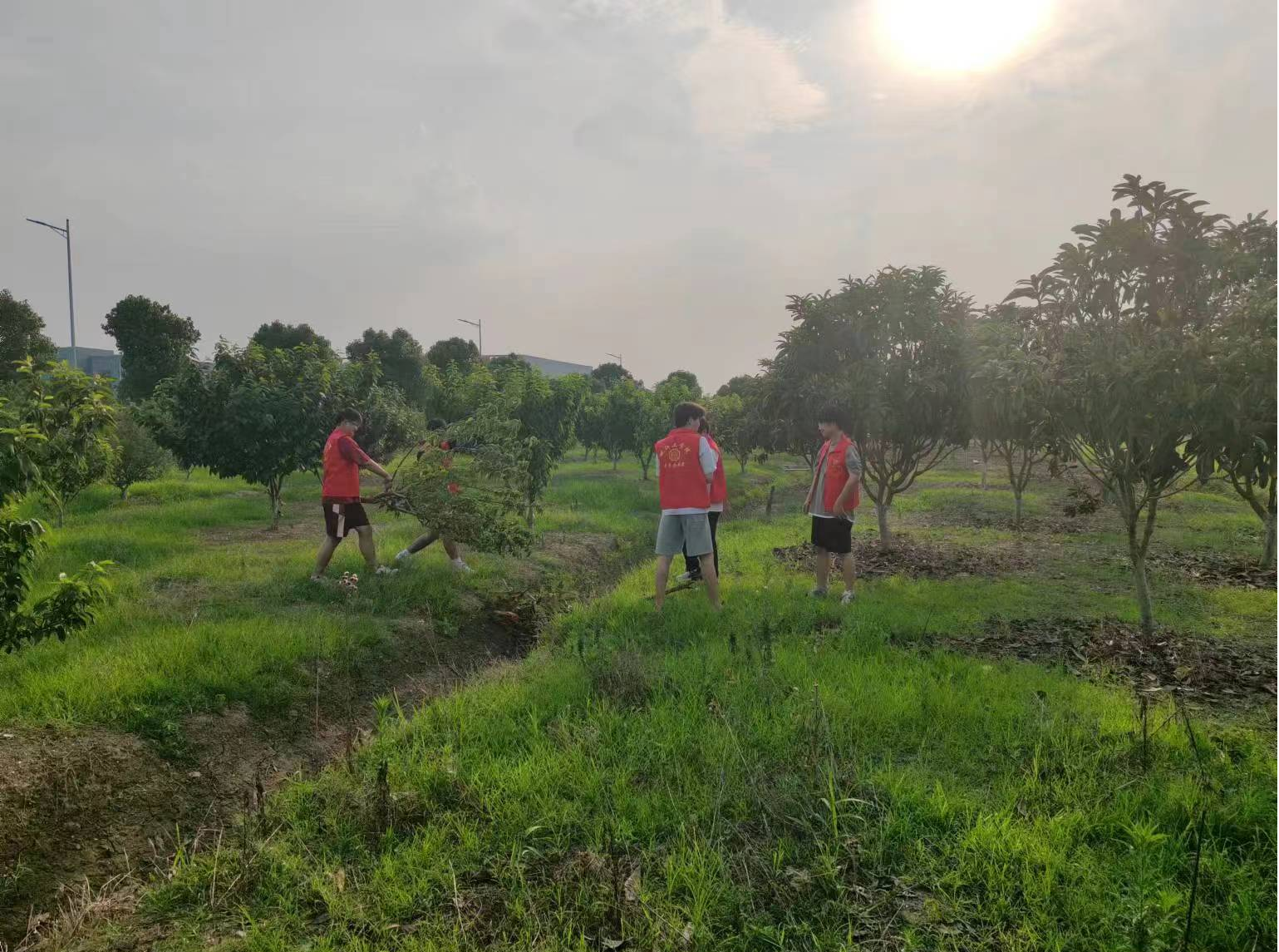 在果农的带领下同学们来到了果园,并且在果农的指导下同学们学会了如何对果树进行对果树观察是否有病虫害。同学们也在他们的热心肠发动下积极地去帮助果农们清理果园里面的枯树枝和树干,虽然天气是炎热的但是同学们的心也是炙热的,即便大家都累的满头大汗,但是同学们并没有感觉到累,感觉到的是快乐与对果树丰收的喜悦。