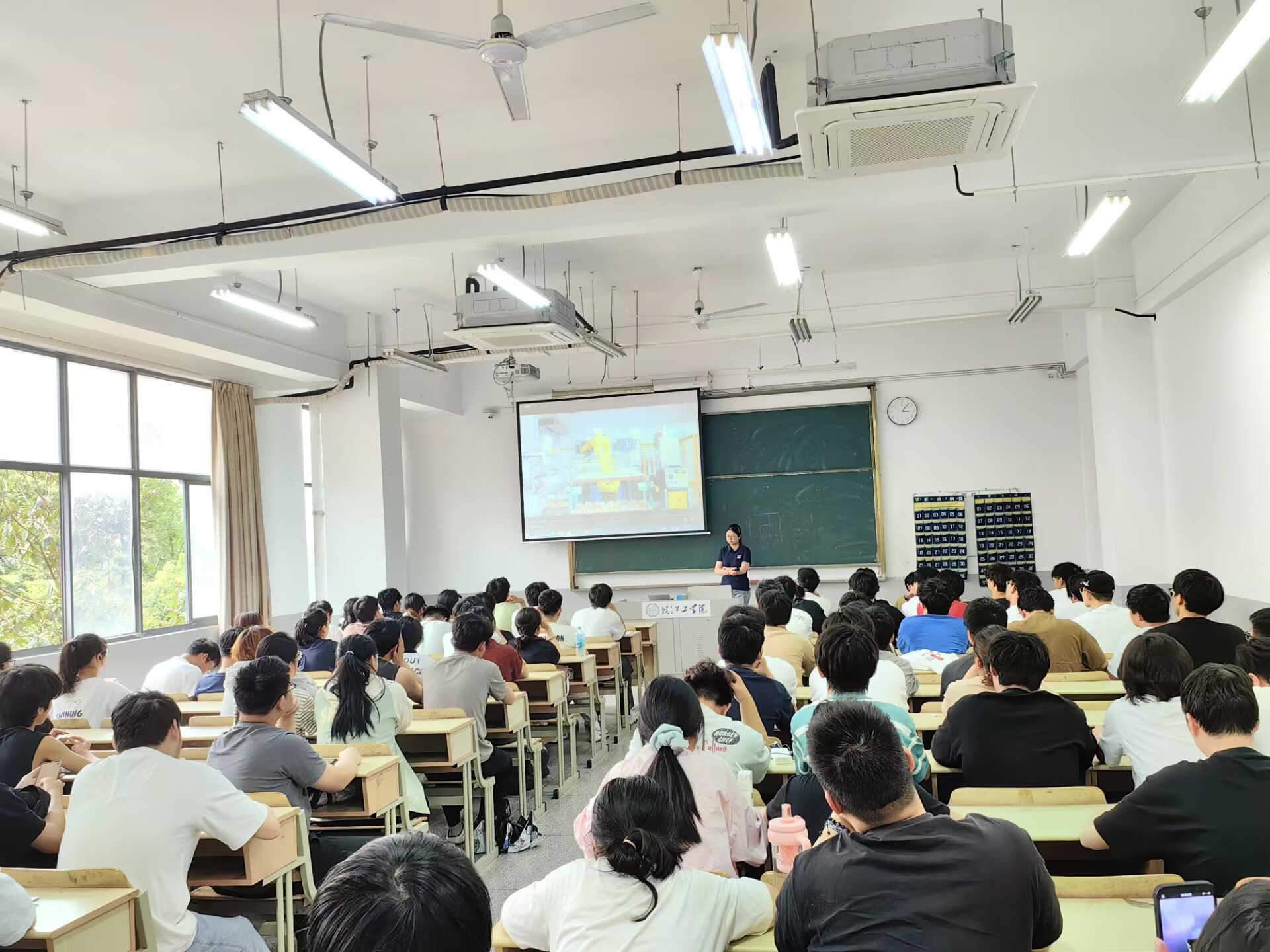 宣讲会上,华孚精密科技人力资源部苏吉琴专员作为企业代表,详细介绍了公司的发展历程、核心技术及行业地位。他指出,华孚精密科技深耕智能制造领域多年,在汽车零部件、精密模具等领域拥有显著优势。苏吉琴重点解读了工程师班的培养计划,包括课程嵌入、实习实践、奖学金评定等机制,强调校企双方将通过“理论+实践”的系统培养,帮助学生快速成长为符合行业需求的卓越工程师。