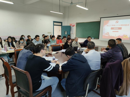 为进一步深入学习宣传贯彻党的二十大精神,持续掀起党的二十大精神的学习热潮,3月15日下午,常务副校长郑明东在东教楼211会议室为管理学院全体教职工做二十大精神专题宣讲报告,管理学院院长方承武、党总支书记宋洪生、副院长朱良平、副书记冯康以及管理学院全体教职工参加,会议由宋洪生主持。