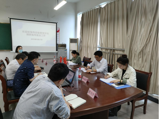 5月17日14时30分于东教211会议室,皖江工学学工部副部长汪朱华、就业指导中心副主任张徐敏、学工部李靖雯老师一行来访我院,围绕就业现状与推进措施等问题展开座谈。我院党总支书记宋洪生、党总支副书记冯康、学工办主任韦晨珺娃及全体毕业班辅导员参加座谈。