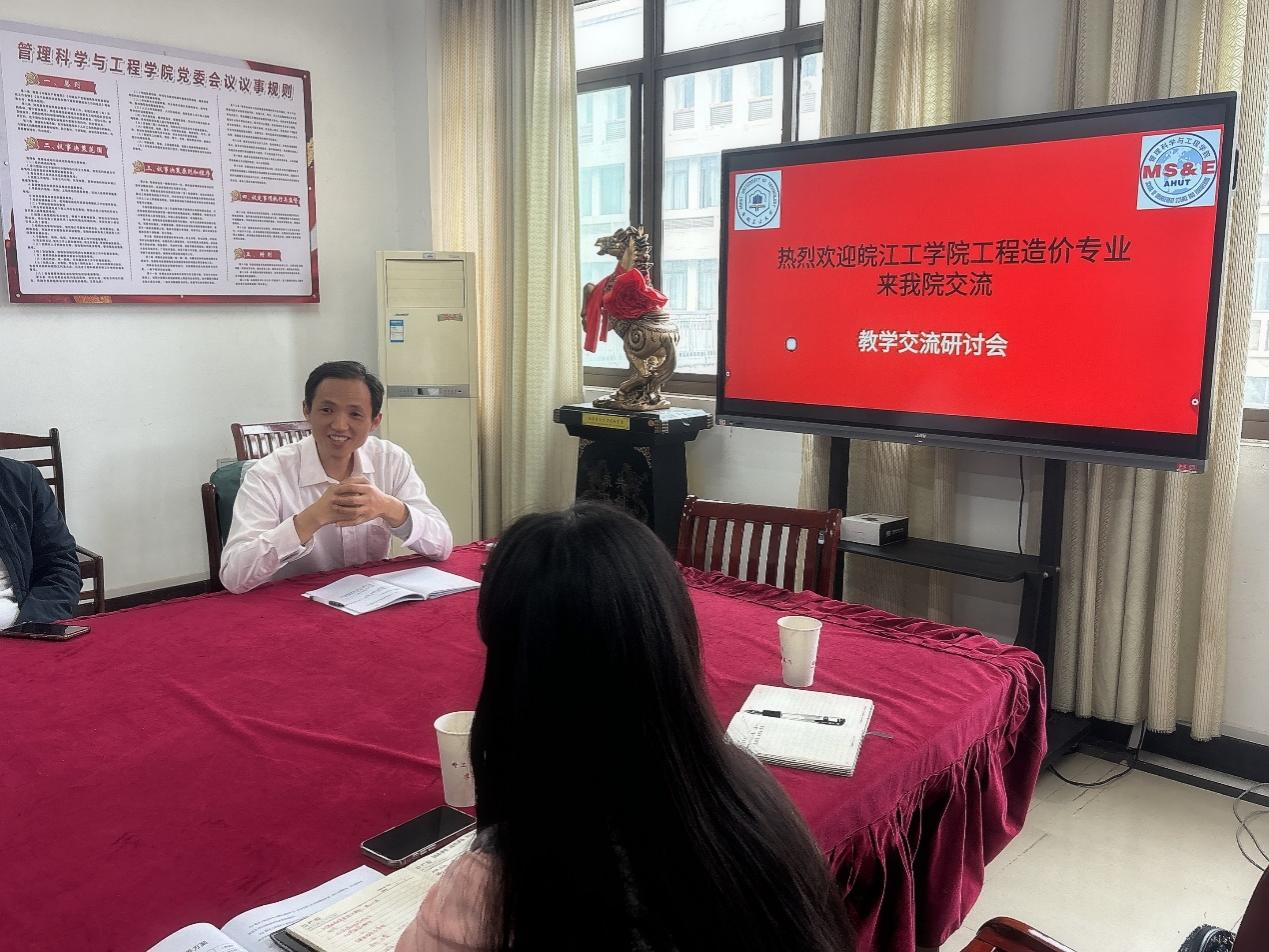 会上,安徽工业大学管理科学与工程学院副院长张洪亮向大家介绍了安徽工业大学工程造价在思政课建设、学科与人才培养、竞赛活动等方面的举措和成效。双方代表围绕学科建设、学生管理、培养方案、毕业论文指导、教材选用等内容进行了深入探讨与交流,并分享了彼此经验做法。