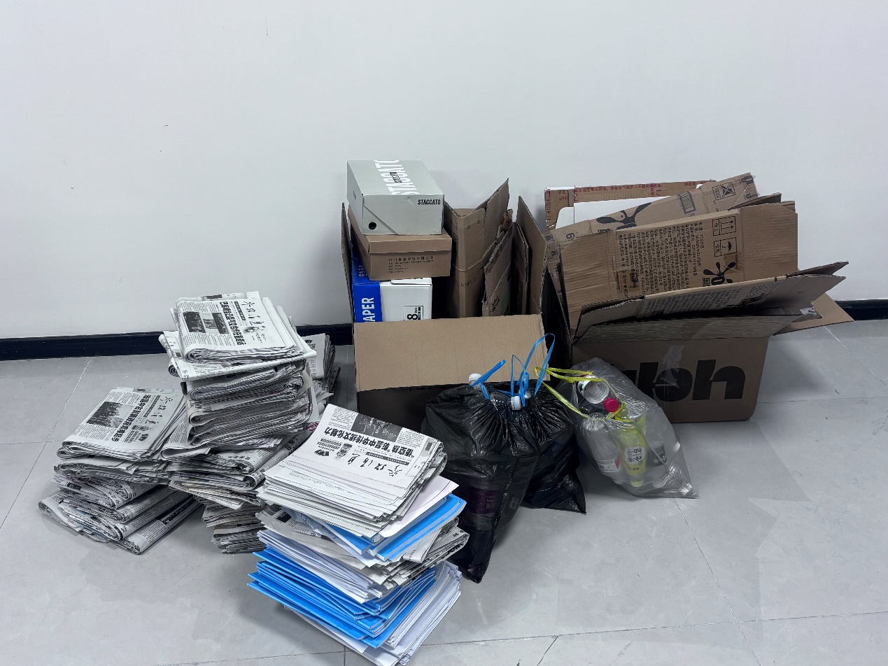 为引导师生追求文明健康的生活方式,积极参与生态文明建设,管理学院组织师生开展了为期两天的“纸因我盒你”环保主题活动。重点围绕办公楼、教学楼附近捡拾白色污染物,收集校园内废弃纸盒、废纸、塑料瓶等。在学院的宣传发动下,在党总支书记宋洪生的带领下,师生们拎着大件小件的纸箱、塑料瓶等可回收物垃圾来到活动点集中分类投放。由专人负责清点、分类、称重并对不同的可回收物进行统计,共同打造绿色生态校园。