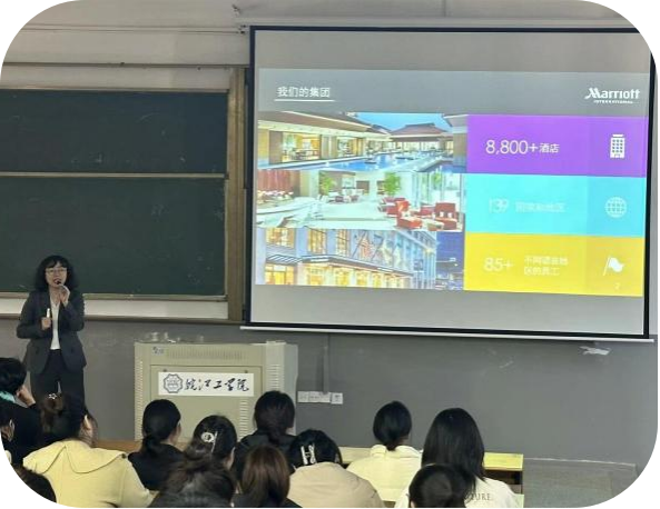 此次双选会诚邀万豪国际酒店管理集团旗下长三角区域:上海西藏大厦万怡酒店、上海东方美谷JW万豪酒店、浙江安吉JW万豪酒店、杭州万豪行政公寓常州武进喜来登酒店、南京华泰万丽酒店等18家高端星级酒店参会。管理学院酒店管理教研室主任张瑜,实习指导老师方雯、丁绍华、査欣彤、章翩、胡成旺、管健舒、王雅文,21级酒店管理及23级酒店管理(专升本)共173同学参会。