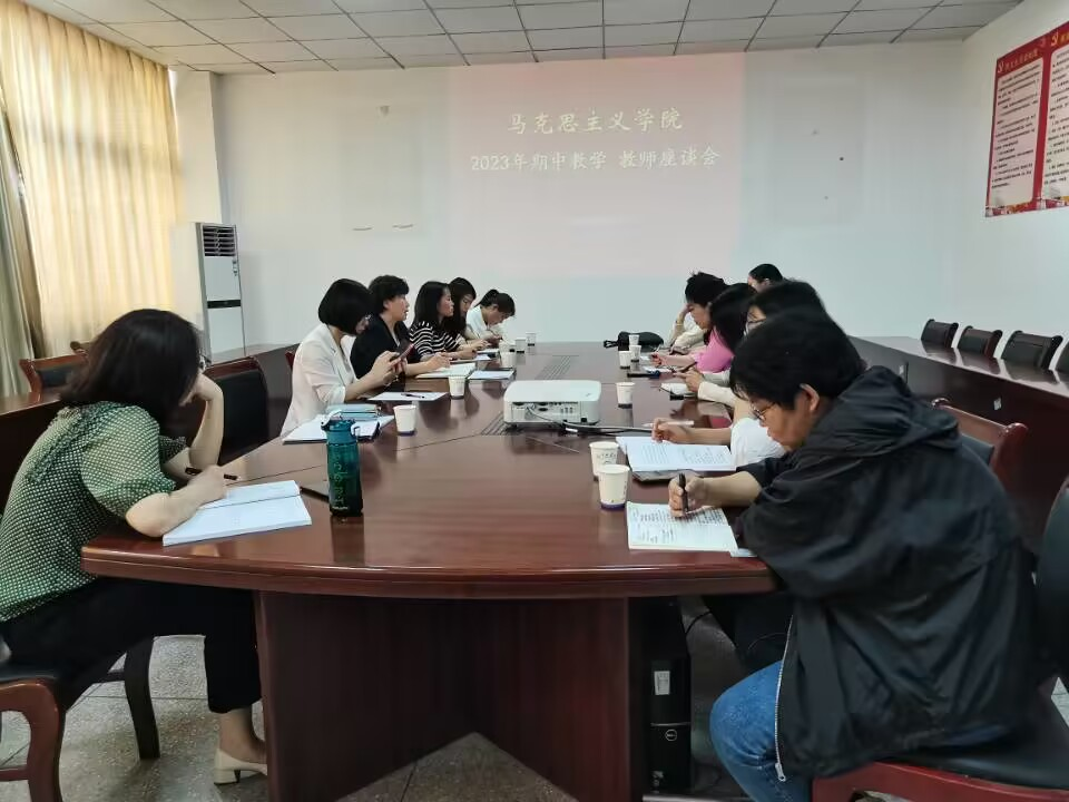 为加强学院教学管理,强化教学质量监控,根据教务处《关于开展2022-2023学年第2学期期中教学检查的通知》安排,为深入了解本学期教学工作情况,马克思主义学院召开期中教学自查活动,4月19日下午开展教师座谈会,马克思主义学院常务副院长刘双、院长助理张春艳、各教研室主任及马院全体任课教师全部参加,会议由刘双主持。