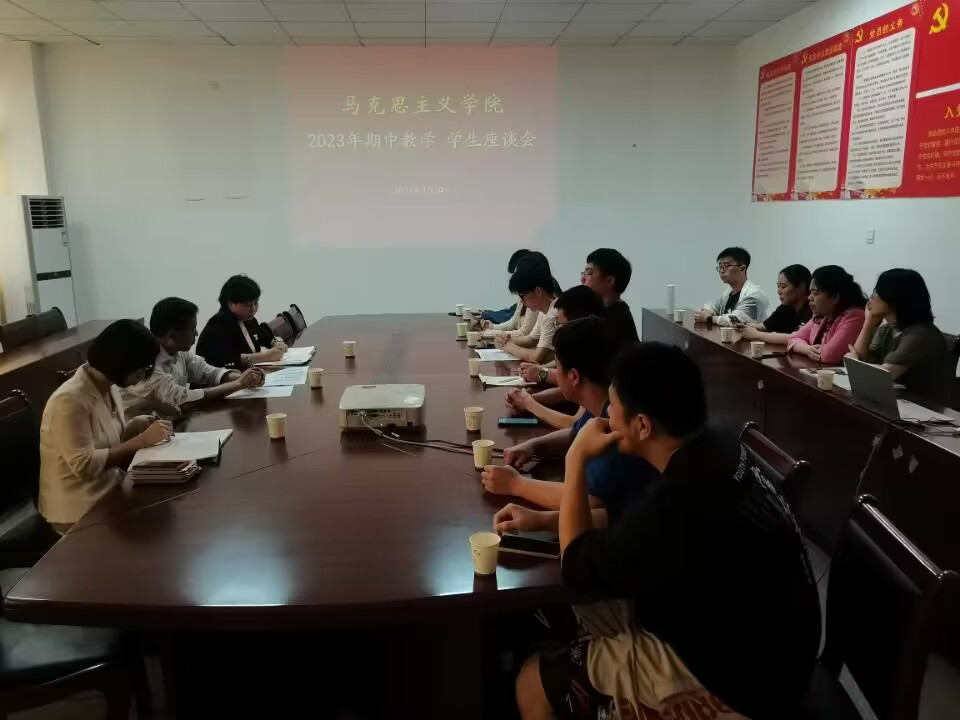 为深入了解本学期教学工作情况,马克思主义学院召开期中教学自查活动,4月19日下午,开展线上与线下相结合的学生座谈会,马克思主义学院常务副院长刘双、院长助理张春艳、各教研室主任及马院全体任课教师全部参加,会议由刘双主持。