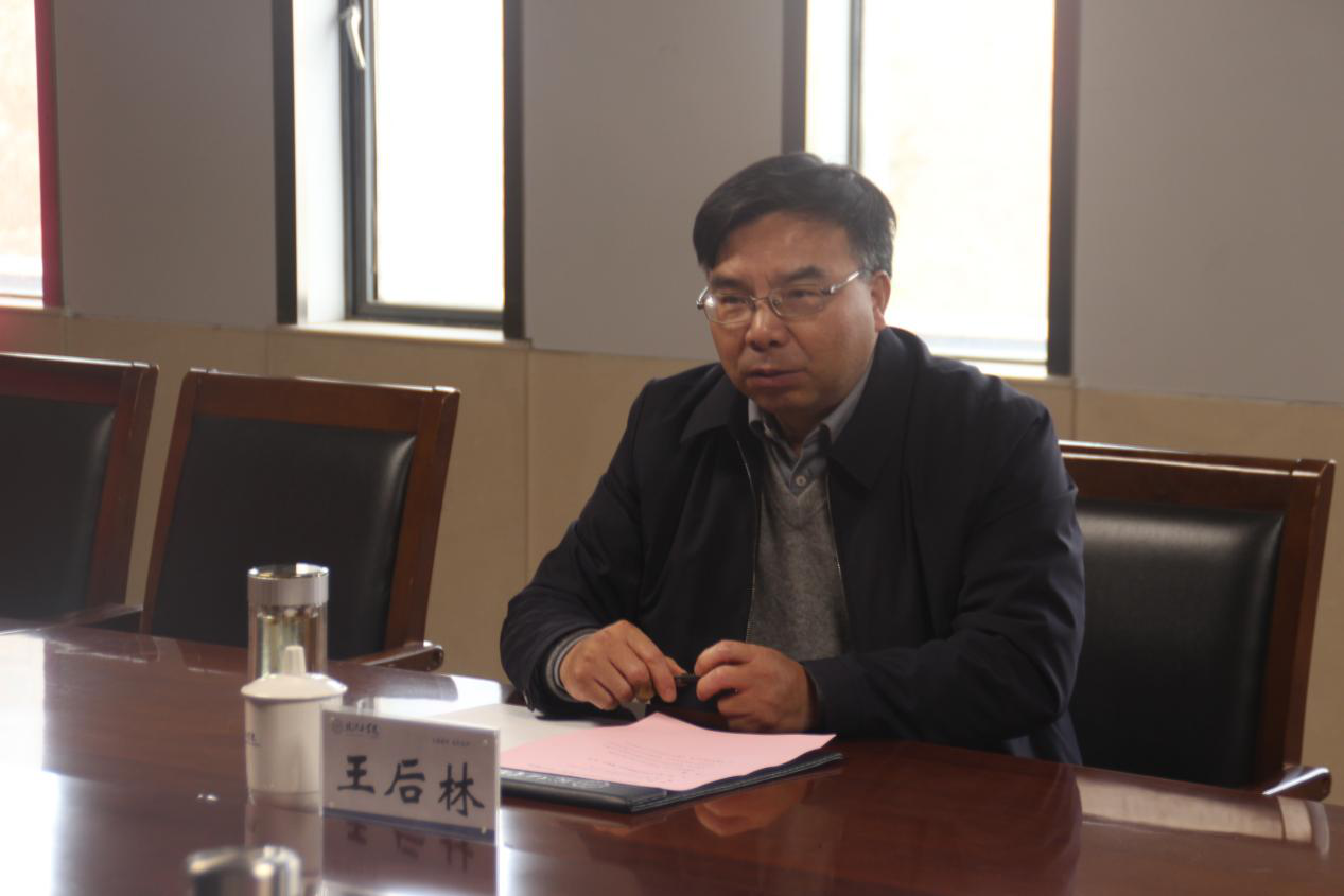 王后林处长做了讲话,他对我校的思想政治工作、马克思主义学院的工作给与高度肯定,并就《新思想》课程教学、思政课师资队伍建设、马院内涵建设给予建设性建议。