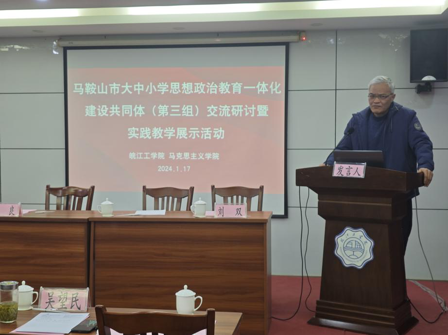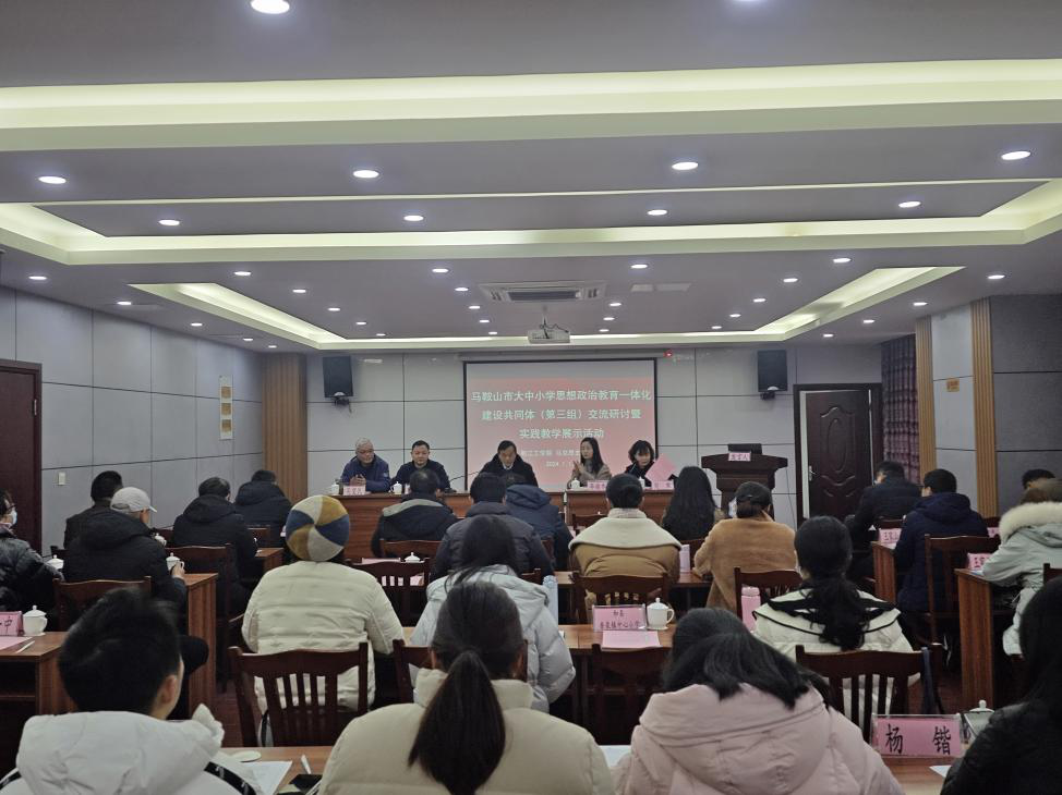 1月17日,马鞍山市大中小学思想政治教育一体化建设共同体(第三组)交流研讨暨实践教学展示活动在18新利怎样顺利举办。18新利怎样党委副书记、副校长孙良,马克思主义学院总支书记、常务副院长刘双,宣传部部长助理王飞,市委宣传部宣教科负责人李蒙,市教育局教科院教研员李瑜乔,市大中小学思想政治教育一体化建设研究中心研究员吴望民,马鞍山市14所大中小学的校长、书记、思政教研室负责人等共50多人参加会议。会议由刘双主持。