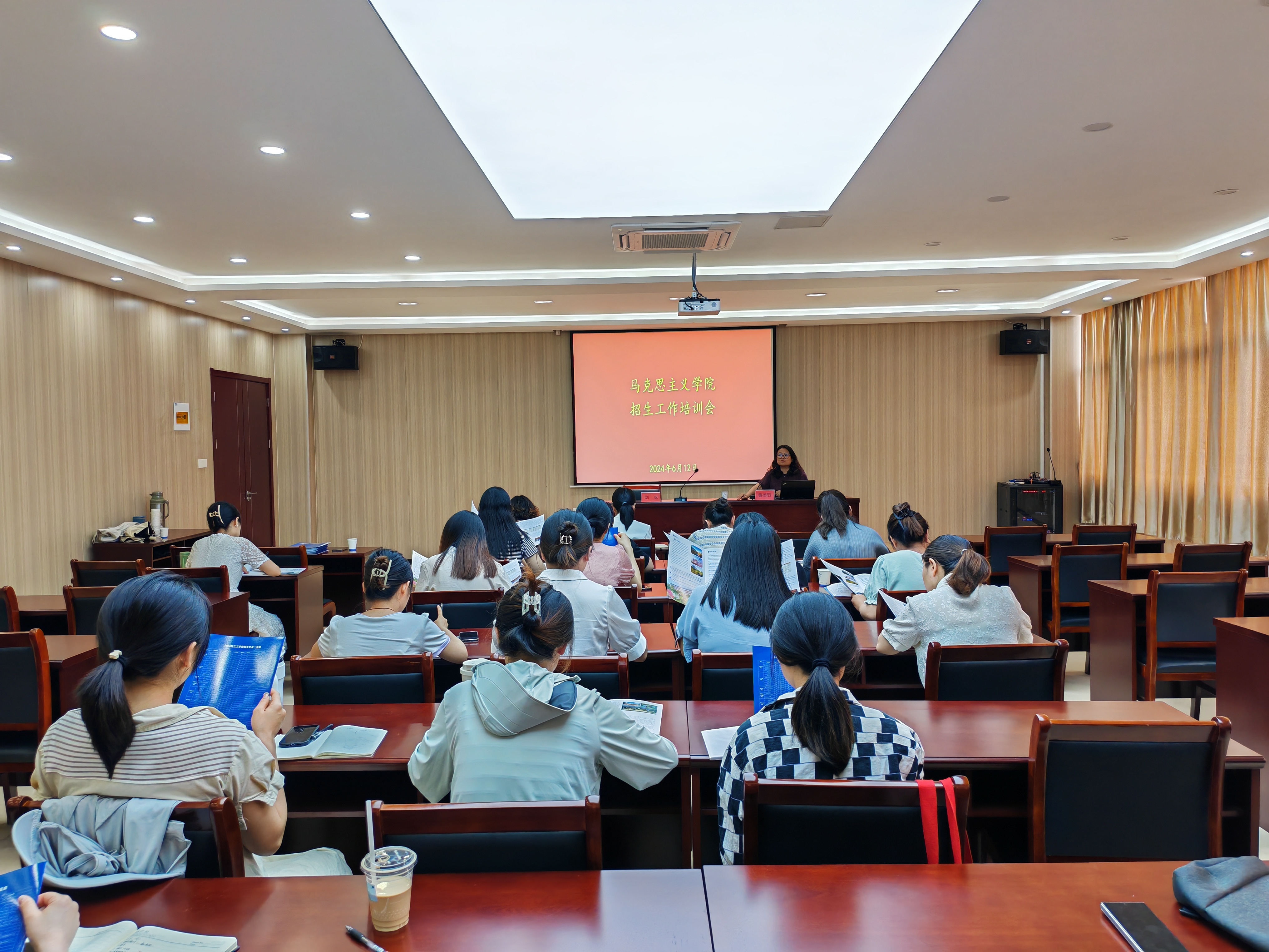 为确保招生工作顺利有效开展,6月12日,马克思主义学院邀请校招生办副主任曹杨阳召开招生工作培训会,副院长、党总支书记刘双,德法与马原教研室主任赵萍,概论与形策教研室主任杨锴及全体教师参加。会议由刘双主持。