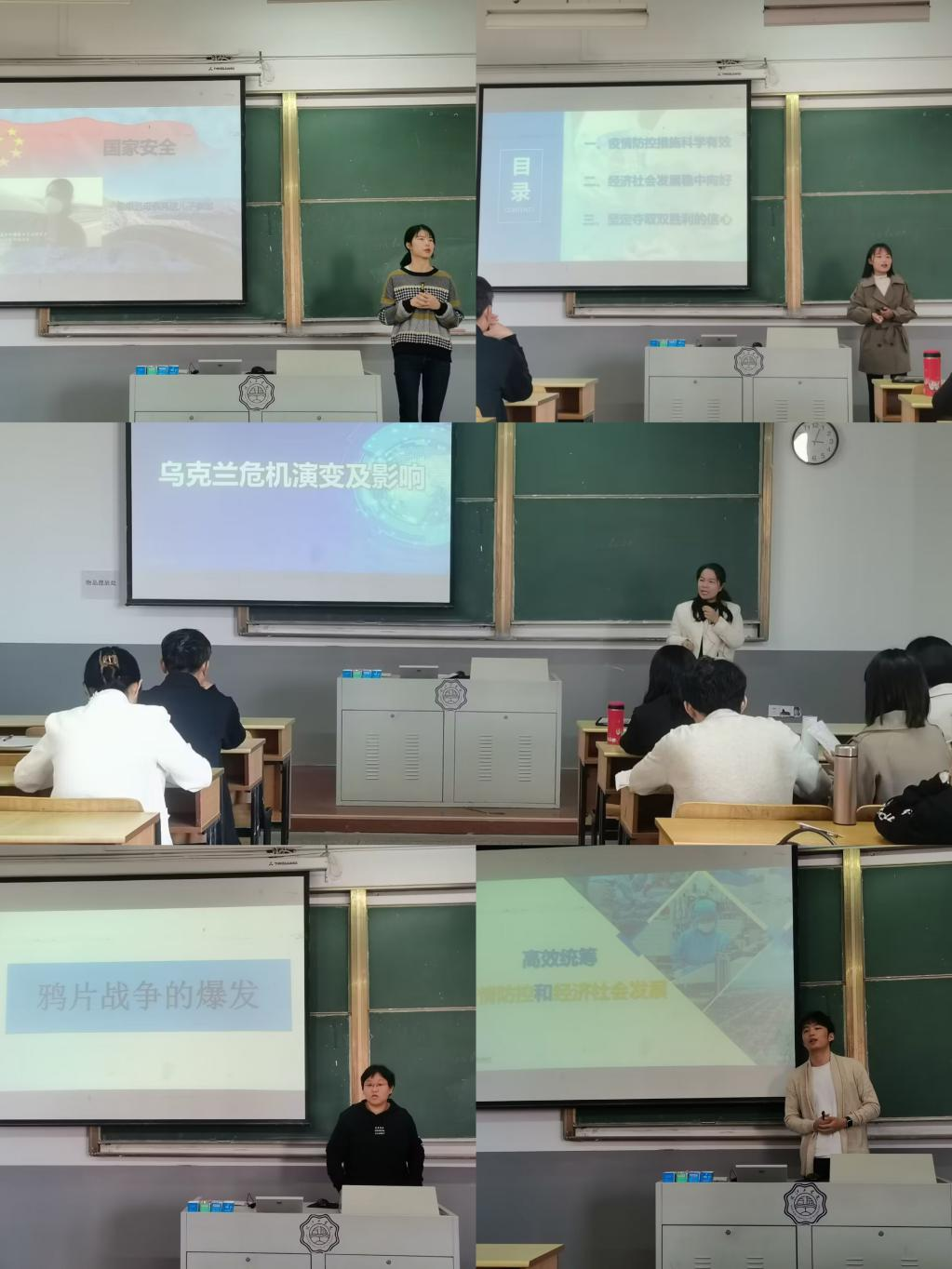 本次符合参赛条件的青年老师共5位,老师们通过抽签决定参赛顺序。凌洁老师以“乌克兰危机的演变及影响”为题,王菲老师以“疫情防控和经济社会发展”为题,黄颖老师以“粮食安全的中国策”为题,杜建业老师以“高效统筹疫情防控和经济社会发展”为题,王洋老师以“鸦片战争的爆发”为题展开比赛。在二十分钟的比赛时间里,选手们精神饱满、教态自然,充分展示了青年教师详实的讲课内容、丰富的教学手段、精心的教学设计、多样的教学风格,精心设计课堂导入,过程中趣味性与知识性结合、注重教学对象的把控、课堂氛围的调动及课堂教学手段的多样性运用。马院教学委员会根据教师的教学内容、设计思路、设计内容、教学组织、语言教态等方面对参赛教师的讲课进行了综合评分。经过程序规范、公平竞争、公正评分等环节,最终,凌洁老师、王菲老师分别以366分、362分的好成绩,代表马院进入校级选拔赛。