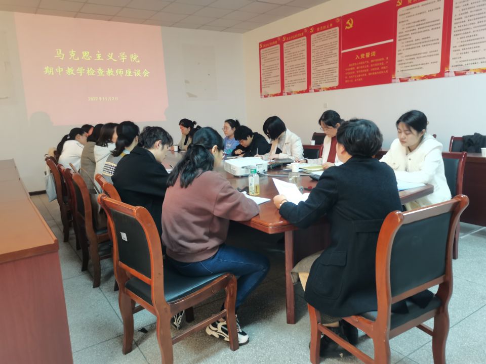 根据学校关于期中教学检查工作的整体安排,11月2日下午马克思主义学院在C507会议室组织召开期中教学检查教师座谈会,总结并反馈教师本学期工作情况,进一步了解课堂教学和管理过程中遇到的问题。马克思主义学院常务副院长刘双、各教研室主任、综合办公室负责人及马院全体任课教师全部参加,会议由刘双主持。