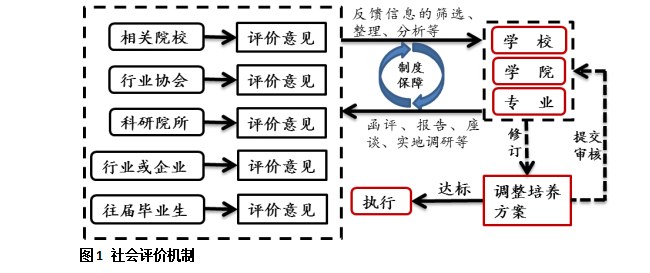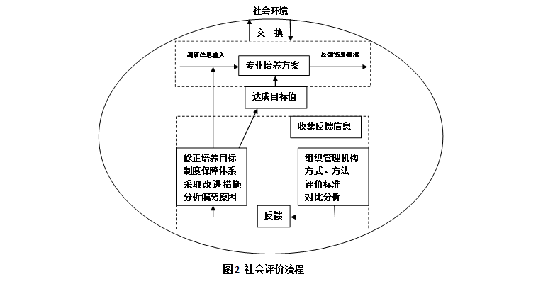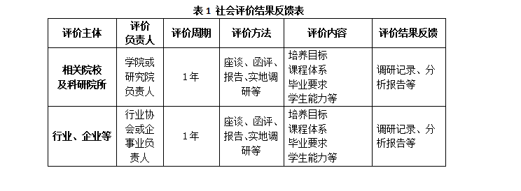 依据工程教育专业认证要求,为提高我院各专业人才培养质量,经学院党政联席会研究决定,构建学校、学院、教研室为主体的三级社会评价组织机构,三者共同构成完备的社会评价机制(图1),制定保障社会评价机制合理运行的政策。包括评价流程、周期、责任人及改进措施等(见表1),社会评价流程见图2。调查问卷见附件1。