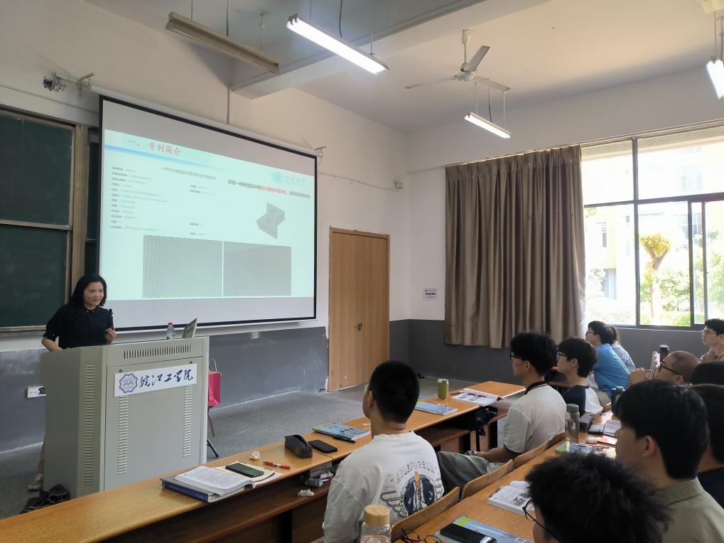 讲座中,江朝华对专利的基本知识、申请专利前的准备工作、申请专利的流程、专利文档的撰写方法与技巧进行了介绍,并结合实际的专利撰写案例对专利的撰写思路进行了分析和总结。江朝华还与参会的学生进行交流互动。