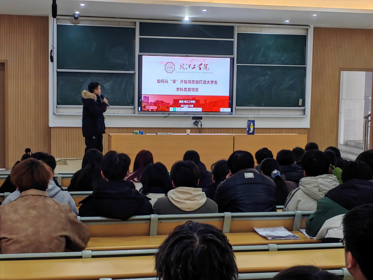 本次论坛主题为“如何从‘零’起步打造高质量大学生学科竞赛项目”,作为主讲嘉宾,水利创新实验室指导老师、港航教研室路嘉首先从科技论文检索方法展开深入讲解,详述了学科竞赛的赛事规则,并结合实际案例,分享了高质量选题与创新构思的策略。随后,路嘉以两则国赛优秀作品为例,指出高质量项目的核心要素以及学生应具备的科学素养,其精彩的讲解让在场师生深受启发。