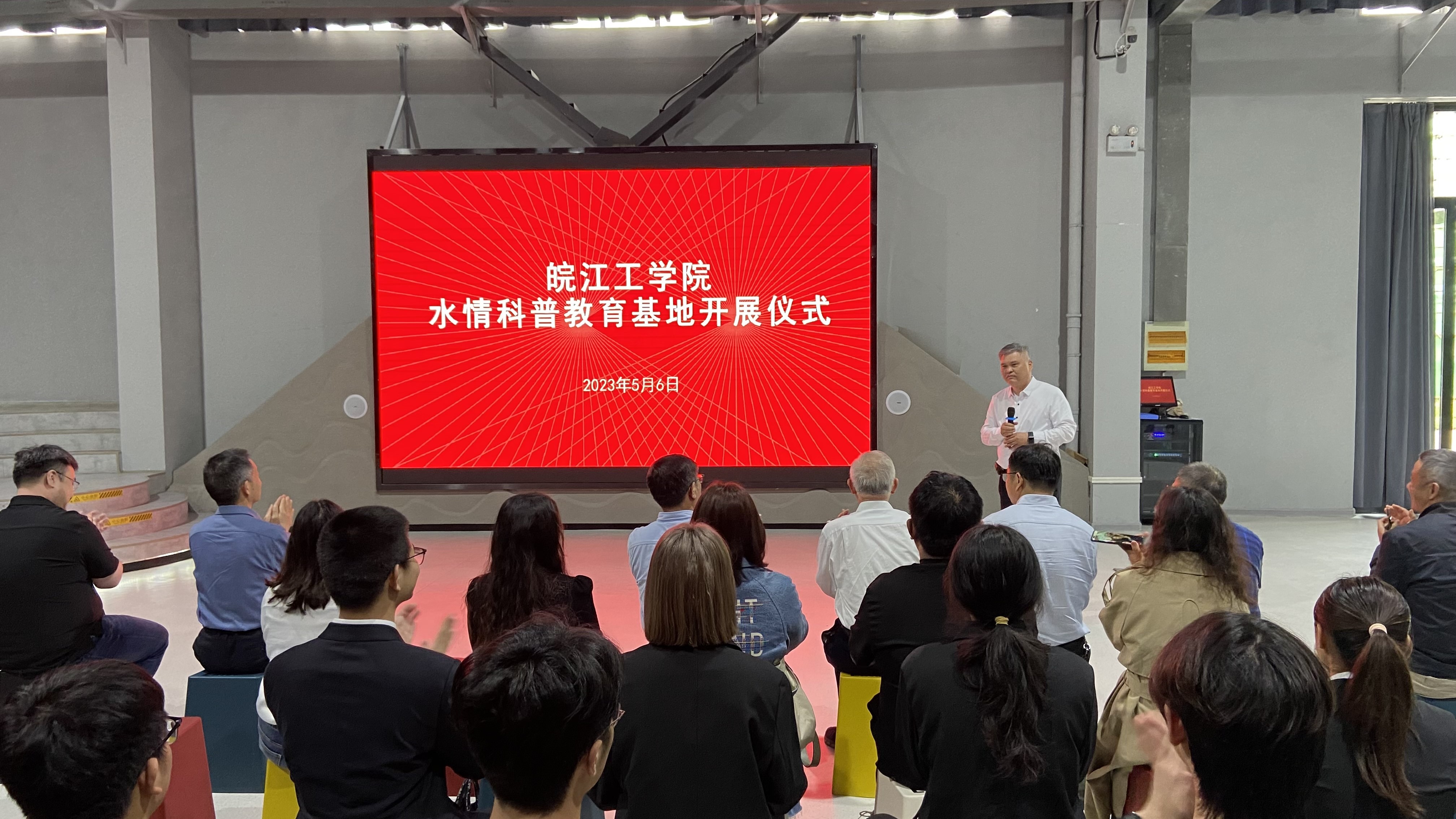 吴继敏校长发表致辞。他代表全校师生对水情科普教育基地的建成并顺利开展表示热烈的祝贺,对三年来为建设水情教育科普教育基地付出辛勤劳动的专家和教师表示感谢。基地综合运用多种教育实践手段,将“模型、展板、实物、多媒体、知识讲座、互动体验、科普长廊”等内容融合起来,它既是师生开展专业教育的实践基地,也是面向社会公众,尤其是中小学生了解我国水情的教育基地,以“绿水青山就是金山银山”为理念引领,承前启后,继往开来,构筑成水文化教育、水知识教育、水生态教育为一体的爱国主义教育和科学普及场所,相信通过水情科普教育基地的开放,将不断提升公众对水利的认知水平,必将促进安徽及周边地区各界社会人士了解我国水情,增强水安全、水忧患、水生态的意识,全面提高节水、护水、惜水的社会风尚。