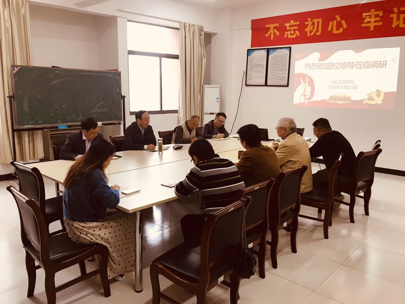 10月15日下午,校党委书记刘志祥、副书记张勤、院务部部长伍旭坤及党务部副部长周冠文一行4人来水利工程学院调研。水利工程学院党政班子成员参加了会议。