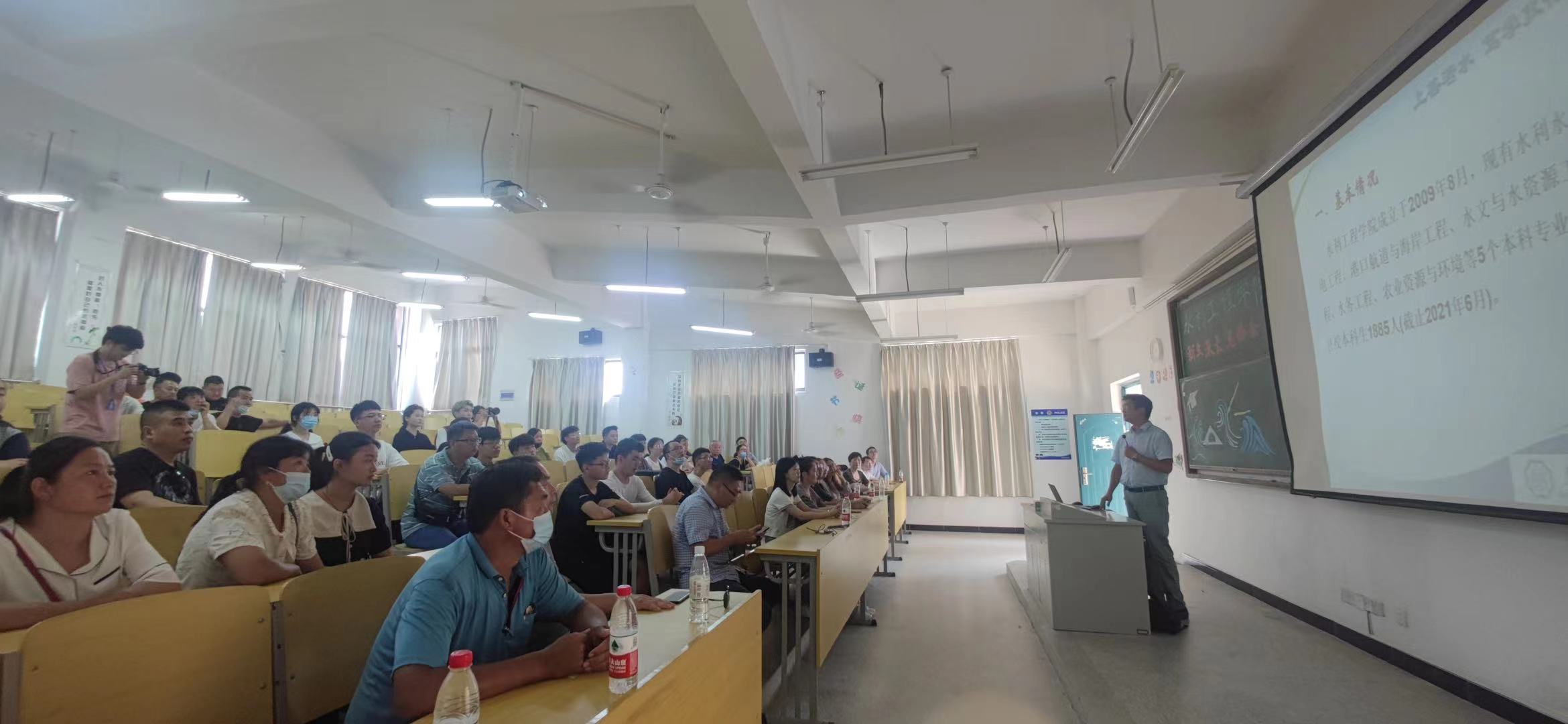 水工结构教研室主任田晓丹、院长助理兼水文教研室主任张鹏、港航教研室主任吴灵君、水务教研室主任杨明杰、农资环教研室程林老师,分别就相关专业有针对性地介绍了专业特点、教学要求、社会需求与发展前景。