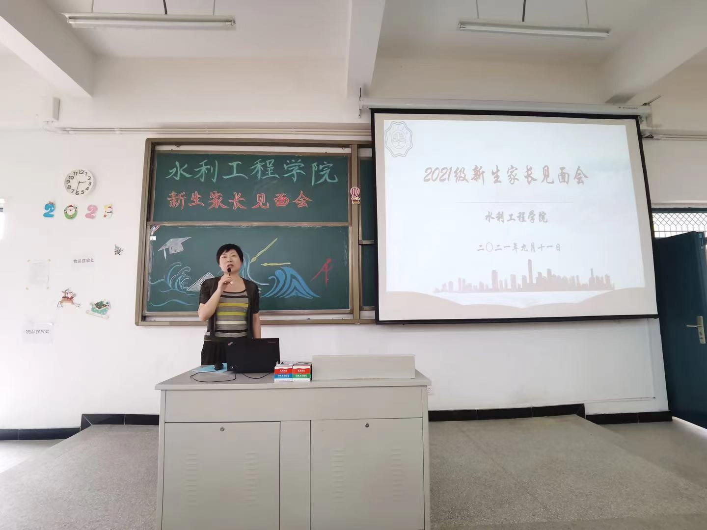 9月11日下午水利工程学院在新利体育在线官网首页登录入口D204教室召开了新生家长见面会。水利与艺术党总支书记张亚梅、副书记汪朱华、水利工程学院院长助理葛文生、张鹏以及各教研室主任、学工办、分团委负责人、新生辅导员等参加了会议。90多名新生与家长参加了见面会。