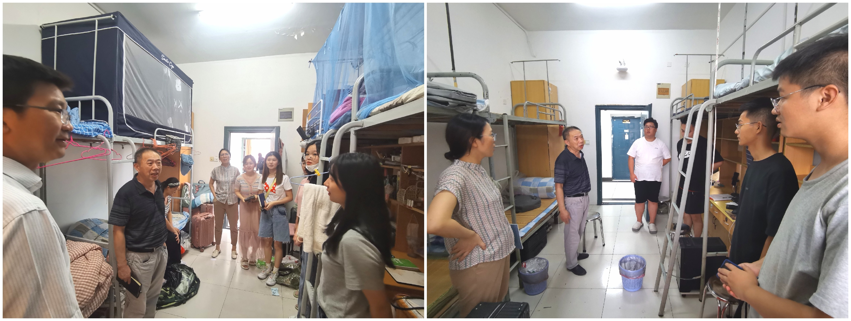 为确保新学期新老生报到、返校工作的顺利开展,落实学校疫情防控工作,了解我院学生返校后的宿舍生活情况。26日下午我院院长胡明、党总支副书记汪朱华与辅导员队伍一同现场走访我院学生公寓,胡明院长每到一间宿舍都悉心询问同学们的报到和生活情况,在亲切交谈中与学生们分享自己的求学经历,鼓励学生适应新环境,以积极的态度、崭新的面貌投入到新学期、新环境的生活与学习中来。同行辅导员们细心询问同学们在寝室生活中遇到的问题,并及时予以解决,嘱咐同学们严格落实学校的疫情防控措施,杜绝麻痹思想。