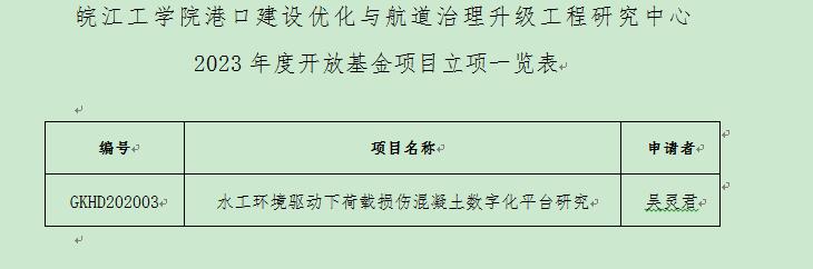 按照《18新利怎样港口建设优化与航道治理升级工程研究中心开放课题管理办法》的规定,中心召开了学术委员会会议,经过专家评审,校内公示无异议并报校领导批准后,现确定《水工环境驱动下荷载损伤混凝土数字化平台研究》开放基金项目准予立项。现予以公布。请项目的负责人进一步修改完善《18新利怎样港口建设优化与航道治理升级工程研究中心开放基金申请书》,并于2024年1月10日前报工程技术研究中心备案,逾期不予受理。具体要求如下: