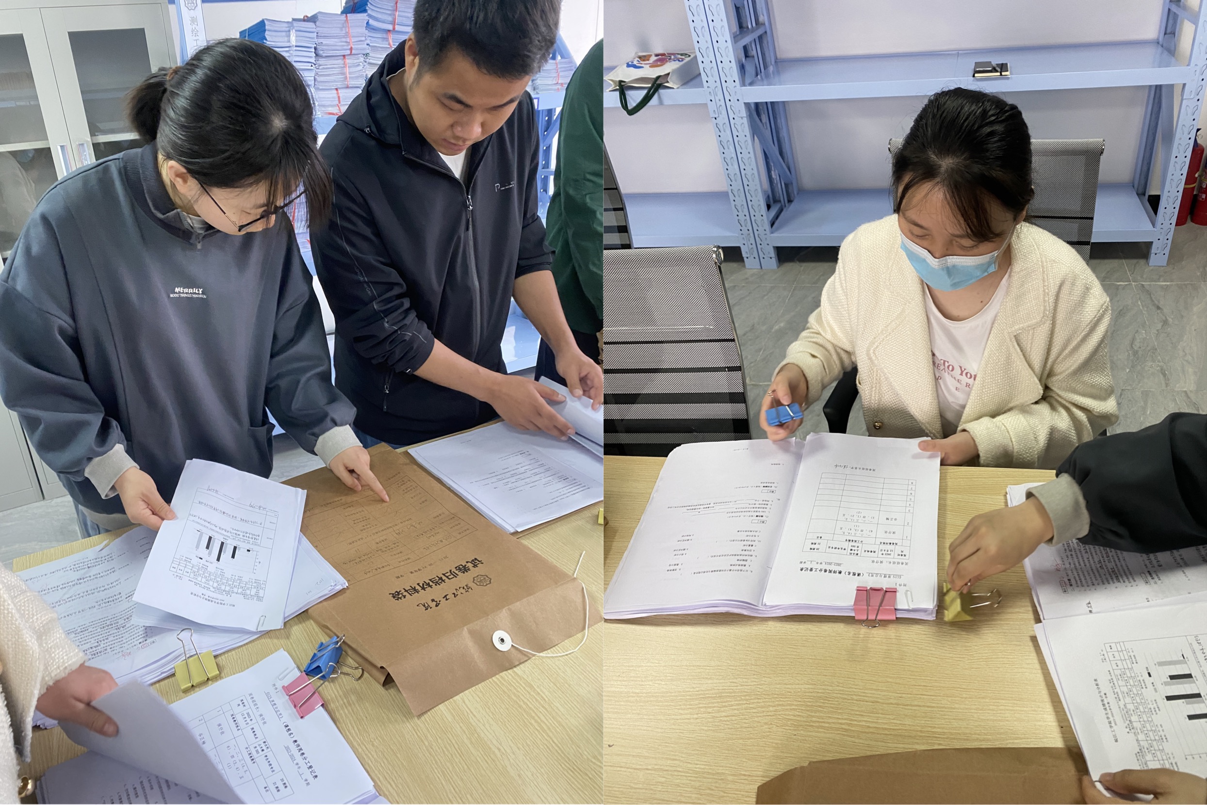 本次互查工作的内容主要包括:归档材料中的试卷、平时成绩、成绩分析表、评分标准、实验指导书等是否完整,档案袋信息填写是否完整,签名和日期有无缺失,试卷、课设、报告有无批改痕迹,各个材料是否符合档案管理规范要求。各位老师认真严谨,对档案进行仔细严格的审查。教研室教学材料归档情况总体较好,在检查中发现的问题也及时当场纠正。