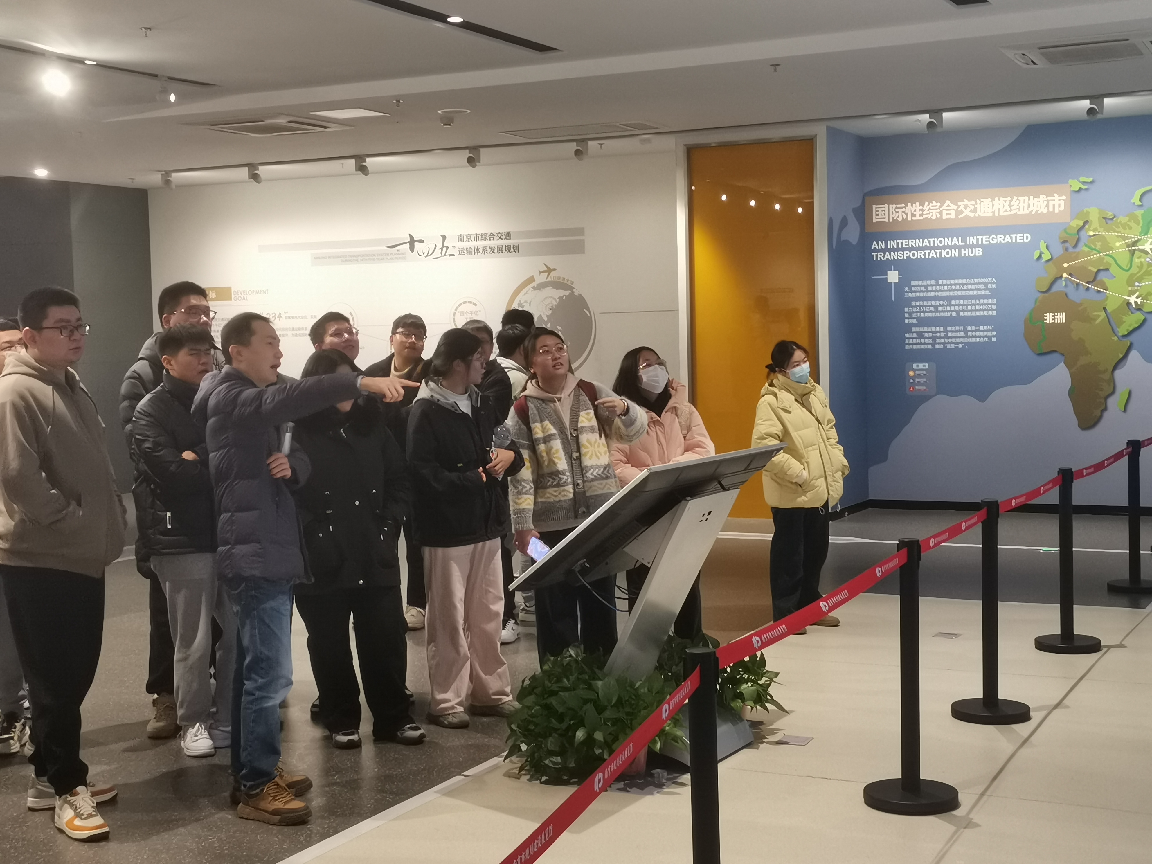 实习期间,邀请了同济大学中国交通研究院石伟宏老师给同学们做了“浙江省通道空间及网络结构优化研究”主题报告, 同学们对交通战略规划、城市路网升级与优化、交通工程咨询师的职业发展有了一定的认识和了解。随后,组织同学们前往马鞍山宁马城际轨道施工现场和阳湖塘片区改造项目现场学习,了解了跨城公共交通战略的意义和具体推进方案,通过实地观摩,同道路设计师深入交流,对道路施工的作业规范、设计技术要点有了进一步的了解。还组织学生前往南京市规划展览馆和南京眼慢行交通街区项目进行实习,学习南京城市交通规划发展理念和国家级综合交通枢纽城市的交通枢纽战略布局,同学们了解了现代城市规划理念,深刻认识了交通规划对城市规划的影响和作用。