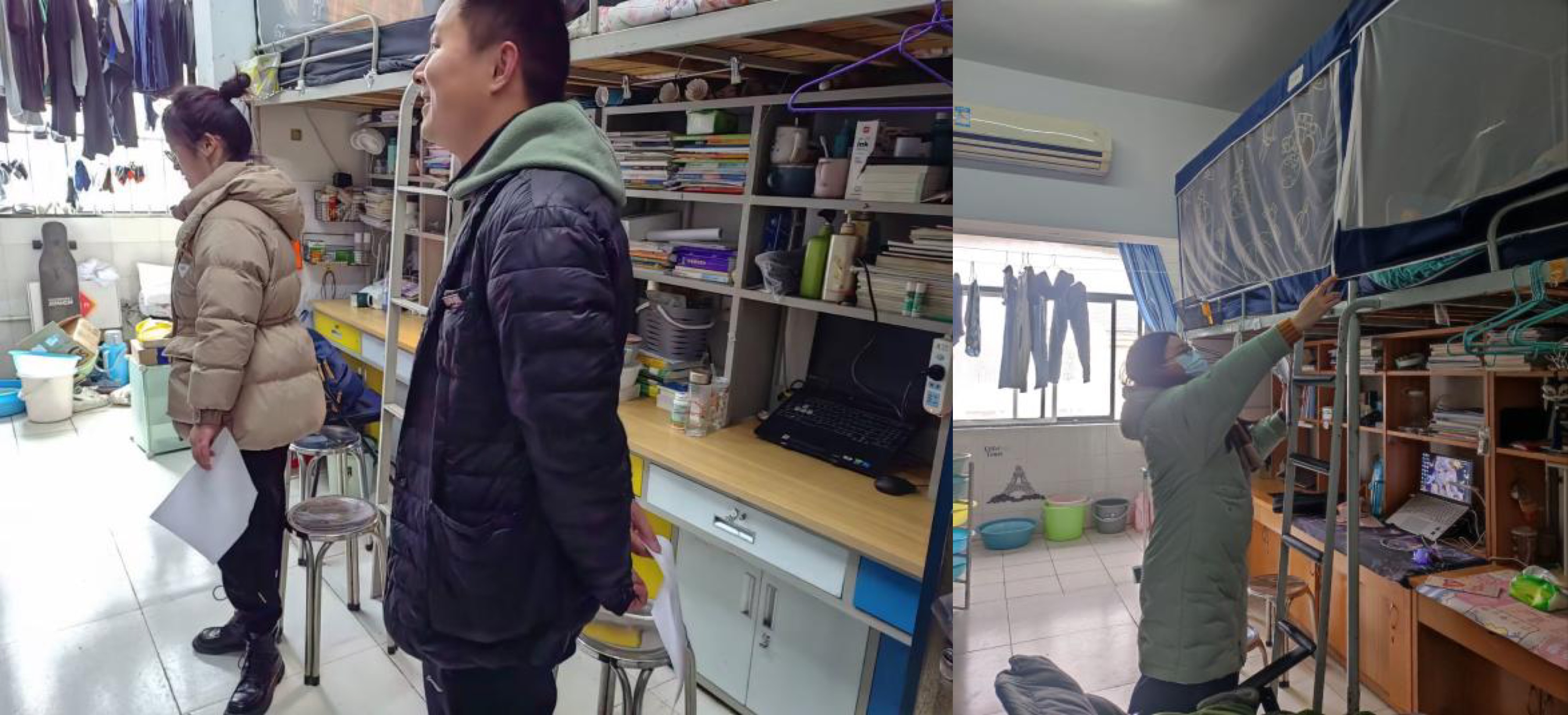 在开学报到期间,辅导员深入学生宿舍,与同学们亲切交流,了解他们的假期生活、社会实践及返校后的学习和生活状态,重点检查了生活区用水用电、防火安全情况。