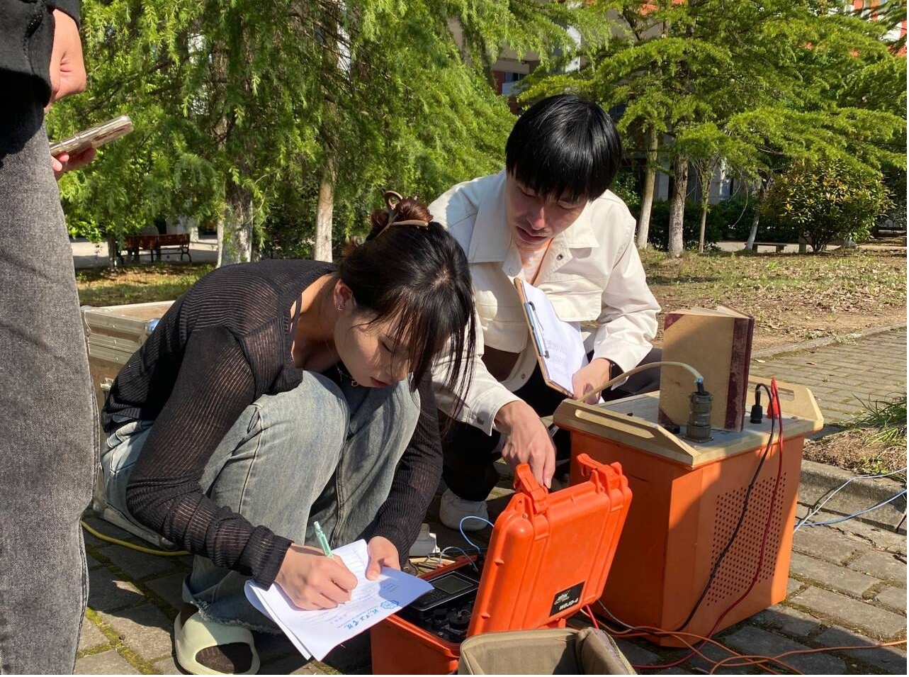 在为期三天的学践过程中,学生们首先学习了工程物探仪器的基本知识,包括仪器的种类、功能和操作方法等。随后,在任课老师的带领下,他们分组进行了实际操作练习,包括磁力仪、电法仪、管线探测仪等多种仪器的使用,并对实验所得数据进行整理和简单的分析,通过实操深入了解了工程物探仪器和实验的具体操作方法。