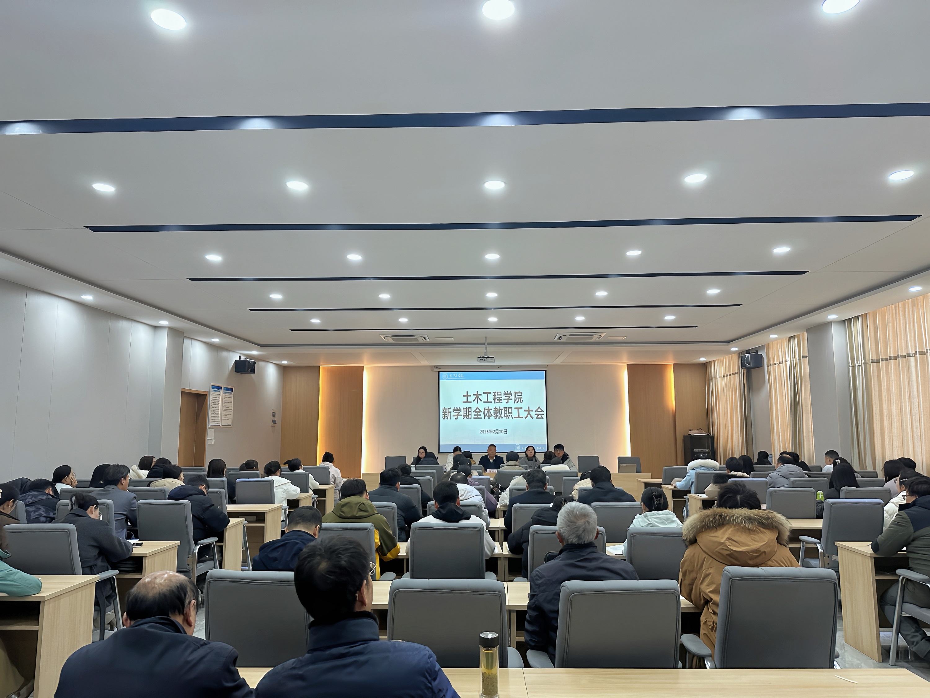 为确保新学期各项工作有序开展,积极迎接即将到来的本科教学工作合格评估,2月20日下午,土木工程学院在水木楼西301报告厅召开新学期全体教职工大会。会议由学院党总支书记王瑜主持,学院领导班子成员及全体教职工参加。