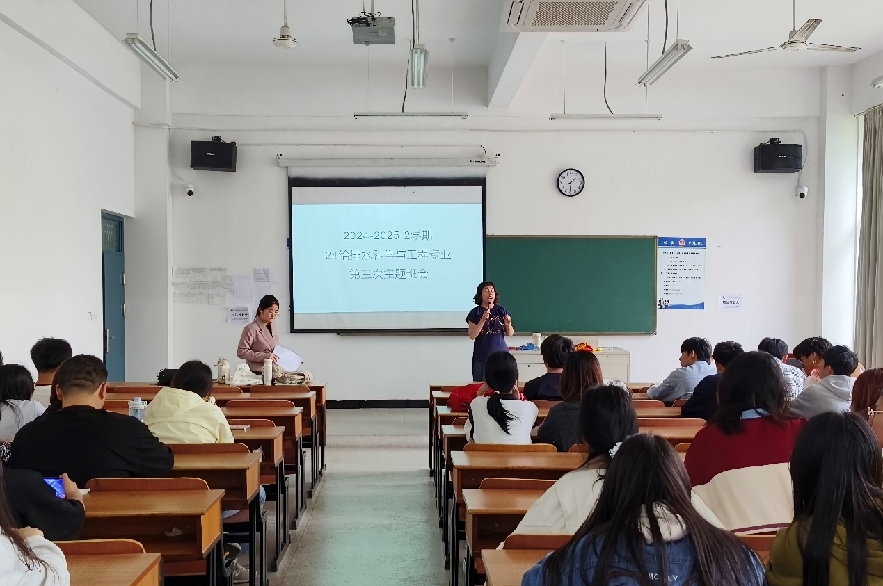 4月22日下午,土木工程学院2024级给排水科学与工程专业召开“合格评估 你我有责”主题班会。班会由1-3班班主任刘令语和闻天班班主任陈颖钦共同主持,24级给排水科学与工程专业全体学生参加。