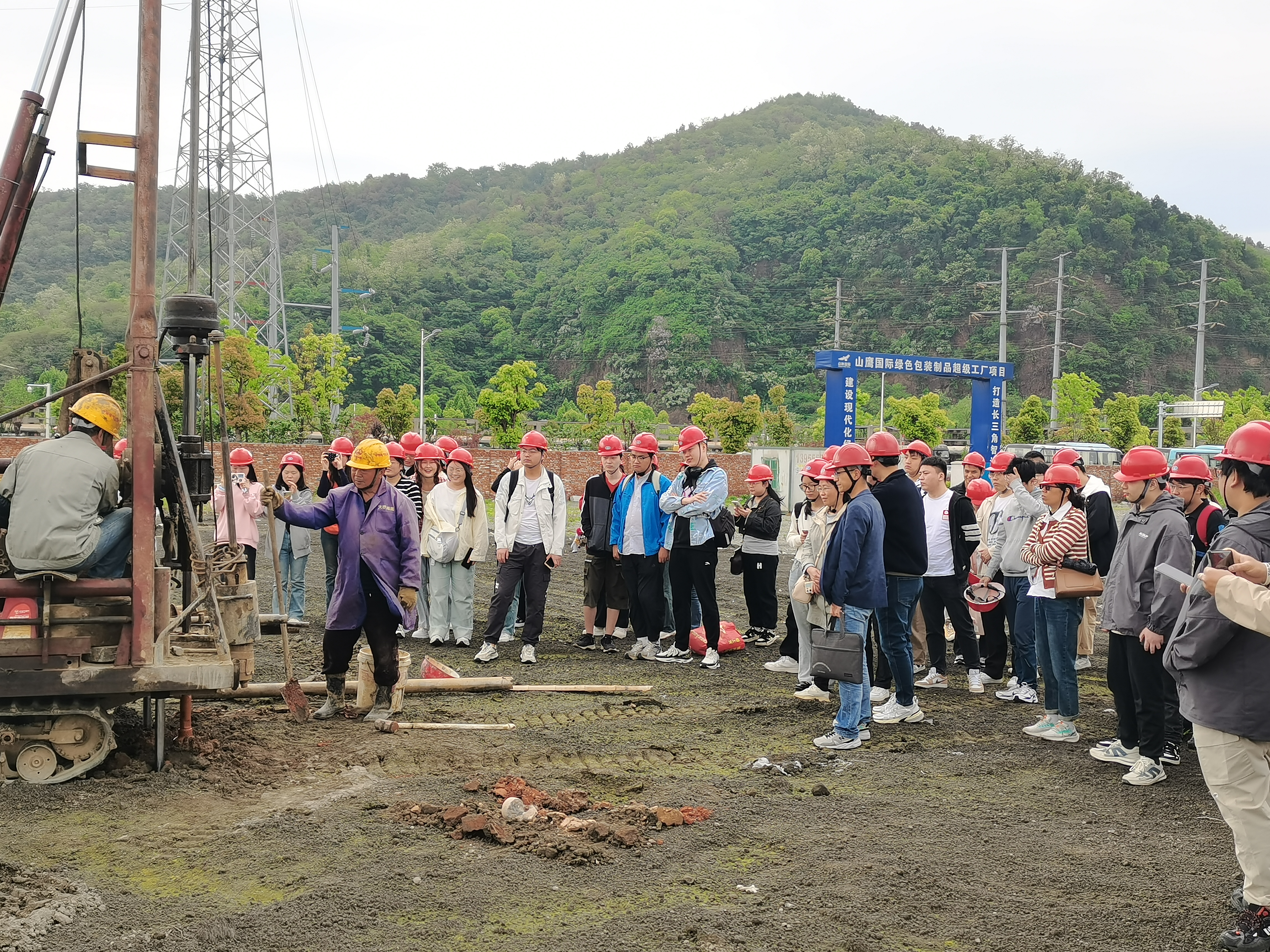 4月19日,土木工程学院组织2020级地质工程专业学生前往马鞍山山鹰国际绿色包装制品超级工厂厂房建设项目开展毕业实习现场实践活动,地质工程专业教研室主任吴蓉、辅导员丁爱华、20级地质工程专业全体学生参加。