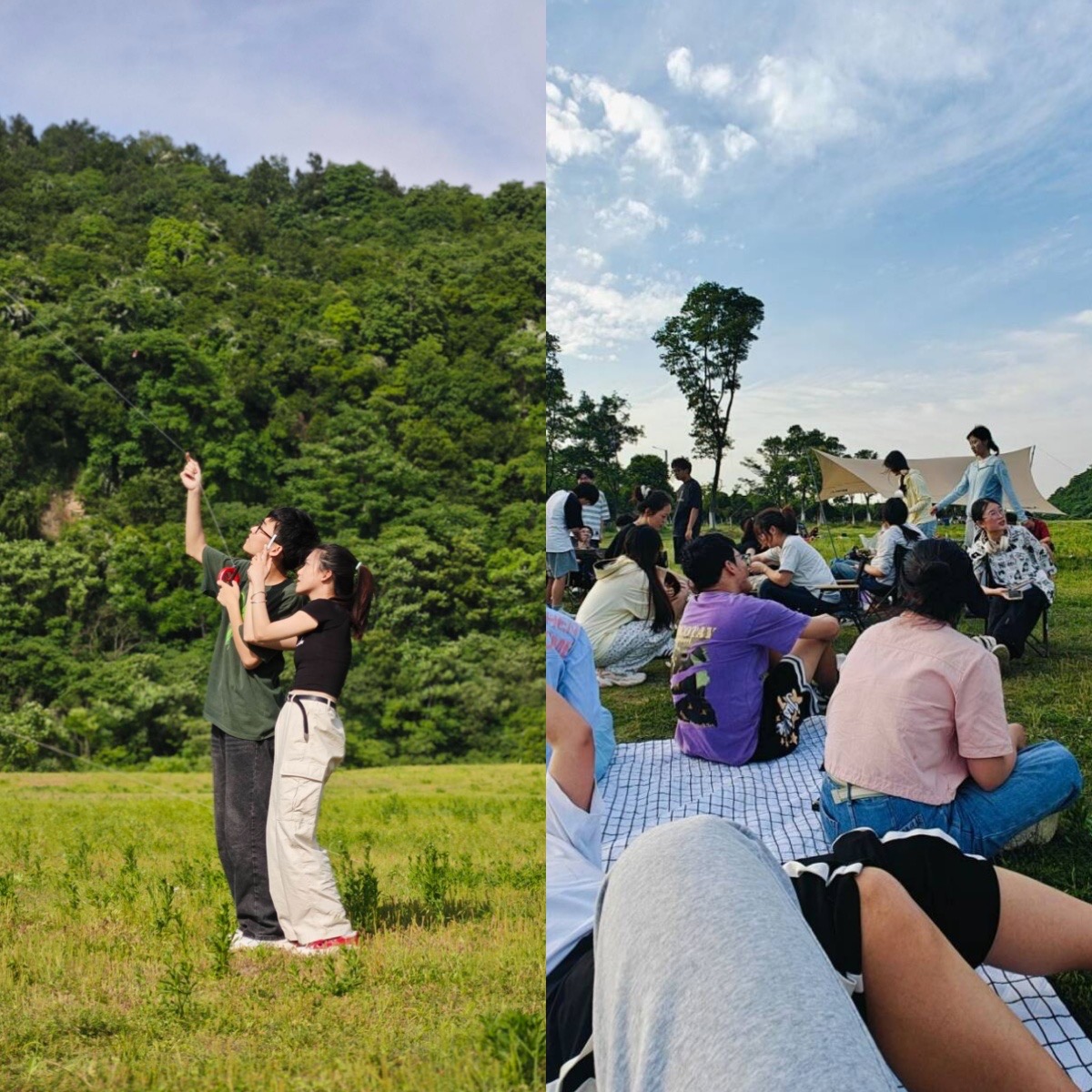 活动当天,大家早早地集合完毕,带着各自的装备和食材,前往活动地点滨江公园。到达目的地后,大家迅速分组行动,搭建帐篷、桌椅、扫烤架、准备食材和调料有条不紊的进行。在大家的共同努力下,不一会儿,一个充满欢声笑语的野炊营地便呈现在眼前。