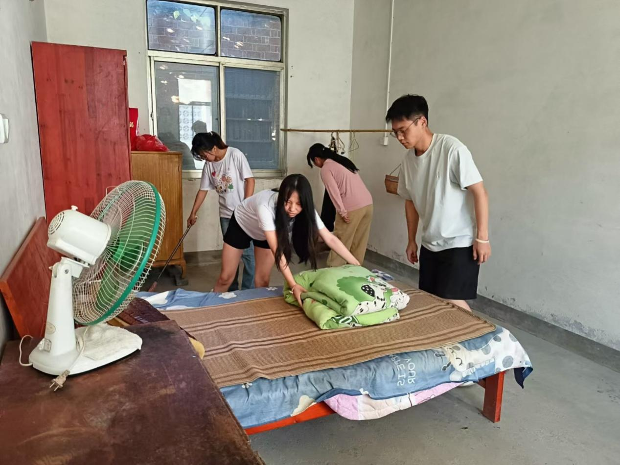 本着对老人的尊重和关怀,充分考虑老年人的作息习惯和居住习惯,团队成员选择上午前往敬老院展开献爱心活动。走进敬老院,团队成员首先向院长请教了解了养老院每位老人的具体情况并认真做记录,便于之后的活动顺利进行。有一位特殊的老人引起了团队成员的注意,他性格孤僻,不愿与他人交流,且常年坐轮椅,腿脚不方便。团队成员特地来到这位老人的房间,征得老人同意后,通过帮他铺床、扫地等生活事务的料理,团队成员收到了老人的认可,双方进行了友好的交流,团队成员充分感受到信任和关爱是相互的,活动顺利进行。老人不仅接受了团队成员们的劳动,还与团队成员进行了友好交流,与老人进行了友好的交流,老人也愿意向团队成员敞开心扉,活动顺利进行。