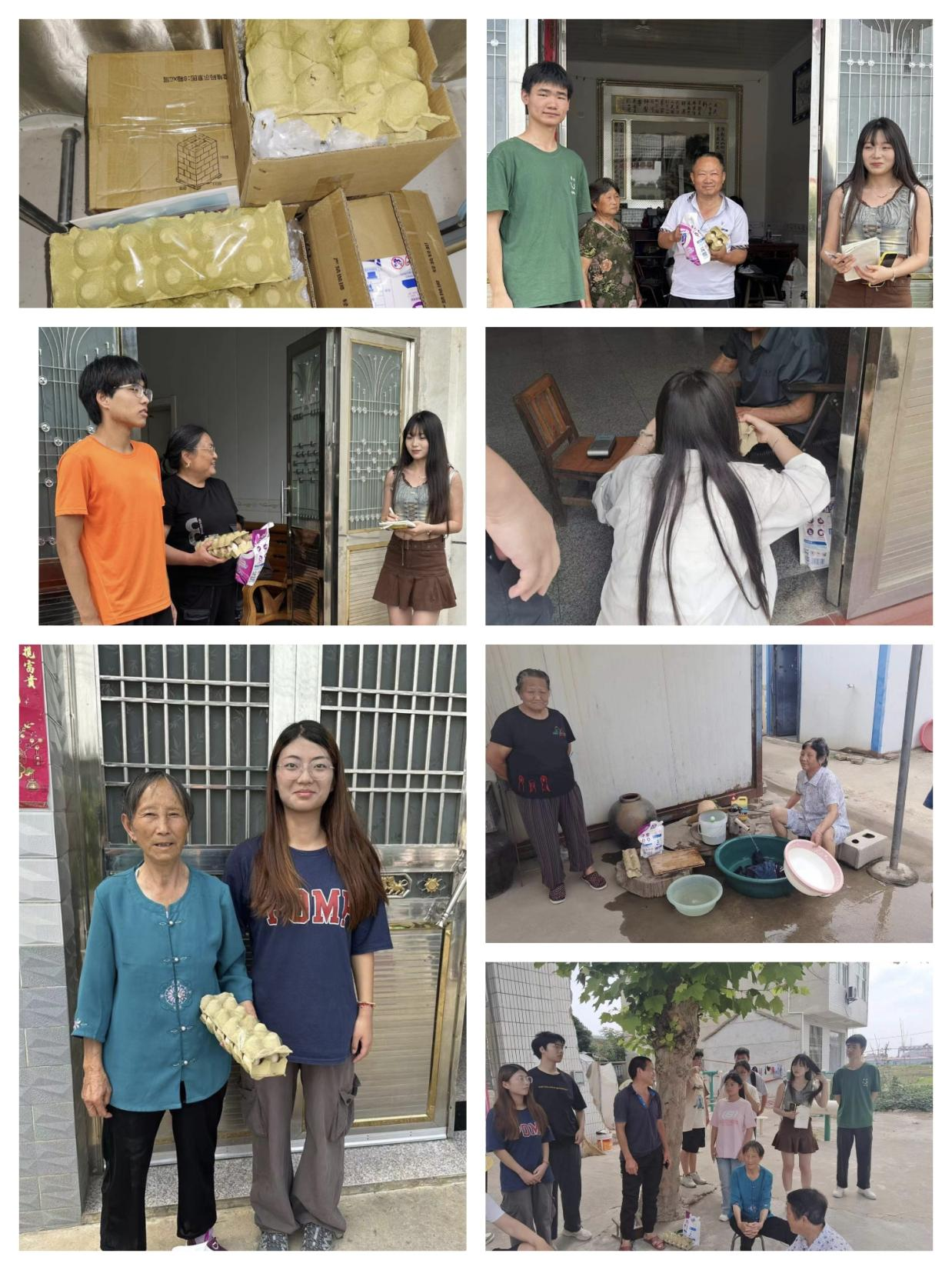 清晨,阳光穿过云层。18新利怎样姥下河实践团队着自己筹集的物资前往和县姥下河村,这些物资有鸡蛋和洗衣液。虽然不多,但是每一件都承载着实践团队队员的温暖和关怀,这一行为彰显志愿者们无私奉献的精神风貌,也能进一步促进姥下河社会实践团队队员和农民的和谐与团结。
