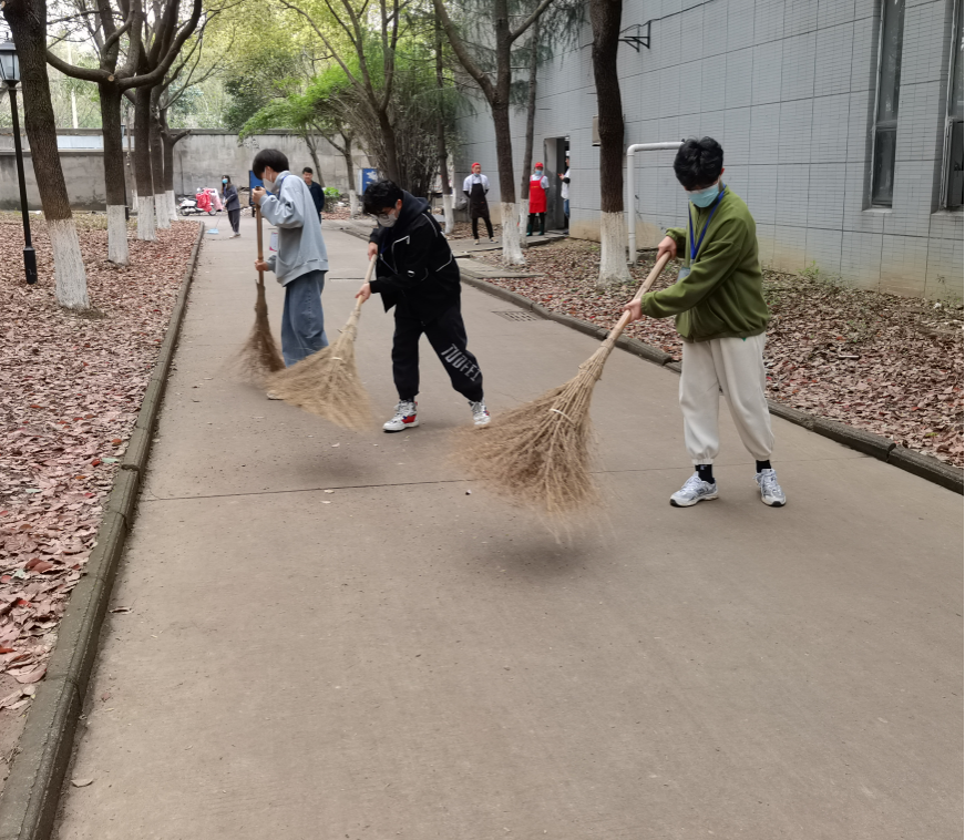 中午,领导、老师和同学们准时在劳育共建区集合。领导、老师发挥模范带头作用,同学们也干劲十足,或是用扫帚堆起来沉积的落叶,或是用手捡起路边的垃圾。一个同学拿着扫帚,另一个就用工具承装, 相互配合,共同清扫校园内的枯枝落叶、杂草杂物、树枝、装运垃圾等,发挥了不怕苦、不怕累、任劳任怨的精神,积极的完成了打扫任务。