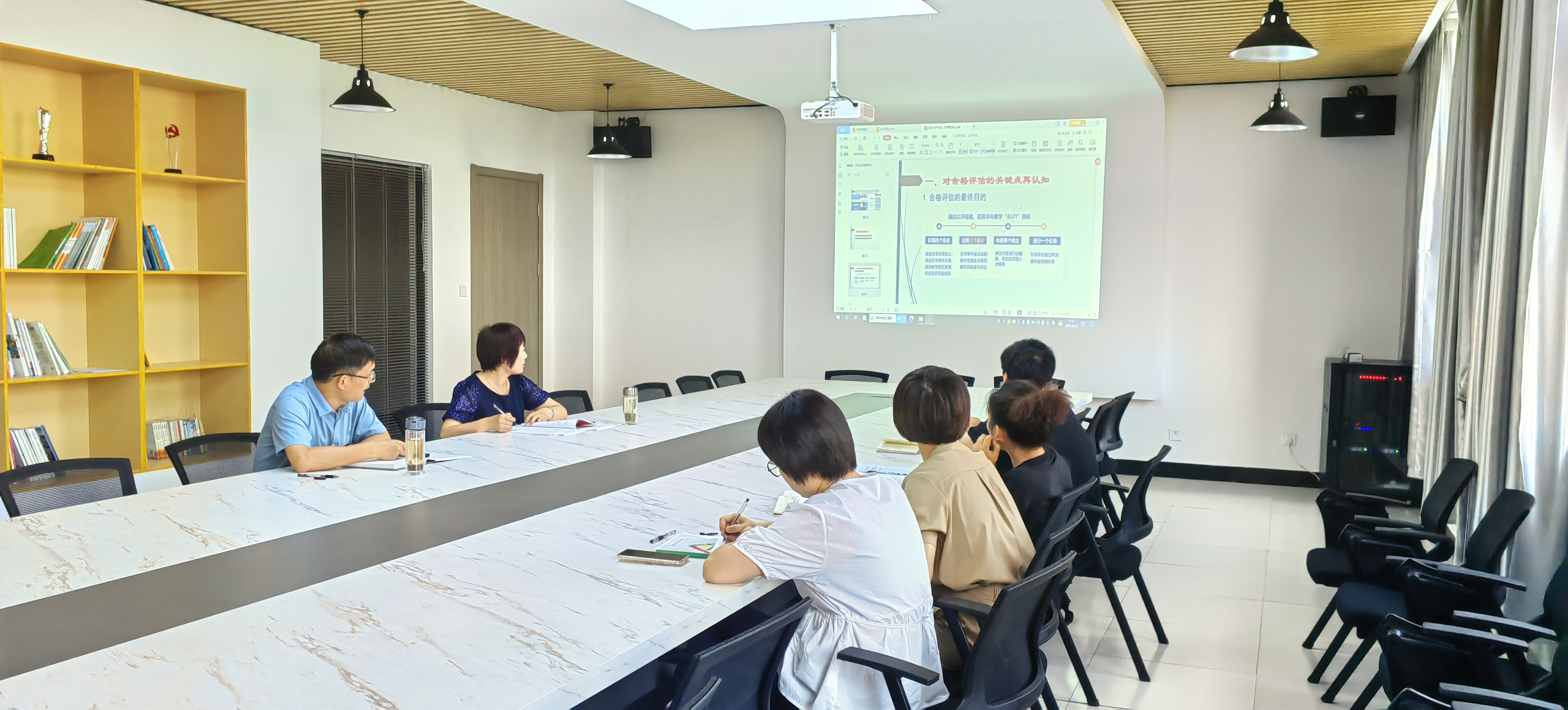 接着,伍旭坤带领大家共同学习了学校迎接教育部本科教学合格评估指标体系。他强调一要明确合格评估对学校、学院发展的重要意义,二要明确学院和个人的责任担当,三要对标对表找出差距,进一步明确目标任务与努力方向。