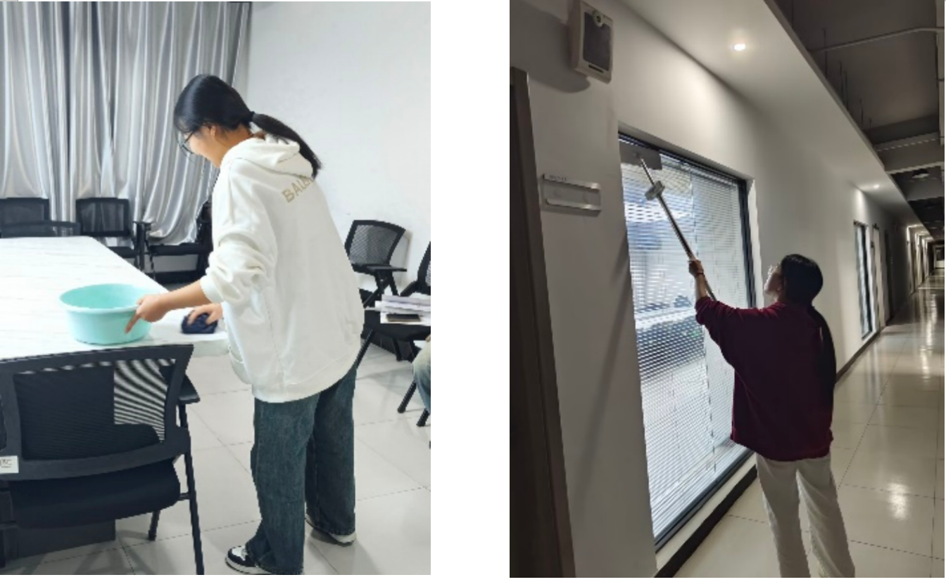 在打扫过程中,团员们充分发挥了不怕脏、不怕累的精神。他们认真仔细地清理每一个卫生死角,不放过任何一个细节。经过努力,学院会议室焕然一新,地面干净整洁,桌椅摆放整齐,窗户明亮透彻,整个环境变得更加舒适宜人。