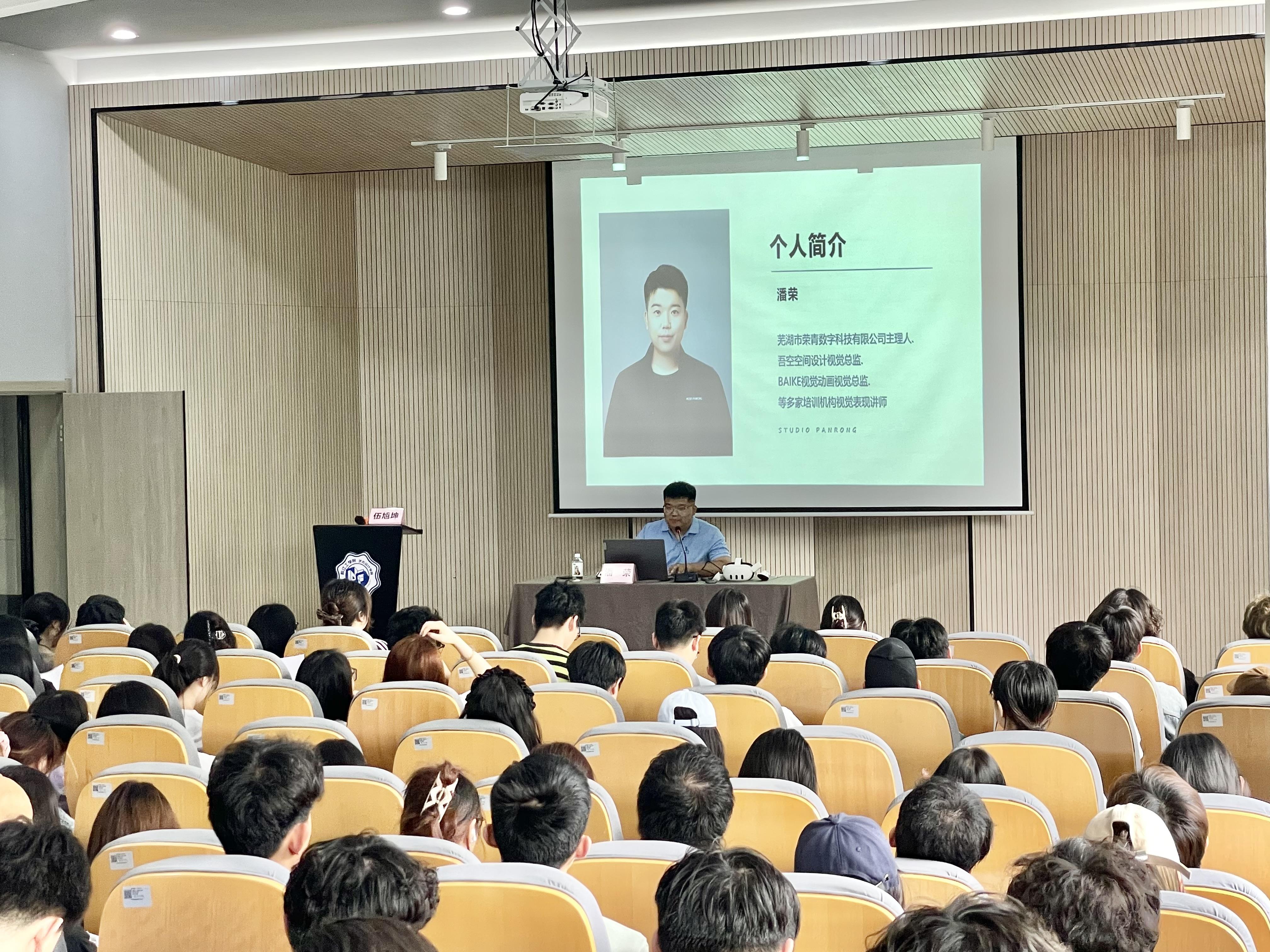 2025年5月16日,艺术设计学院在洪雅楼105报告厅开展“影视级虚拟现实可视化技术与工作流程漫谈”讲座,主讲人为芜湖荣青数字科技有限公司总经理、芜湖吾空装饰工程设计有限公司视觉总监潘荣。本次活动由艺术设计学院院长伍旭坤主持,相关软件教师及数字媒体专业学生参加。旨在通过行业前沿技术分享与实践案例解析,深化产教融合,提升师生专业素养。