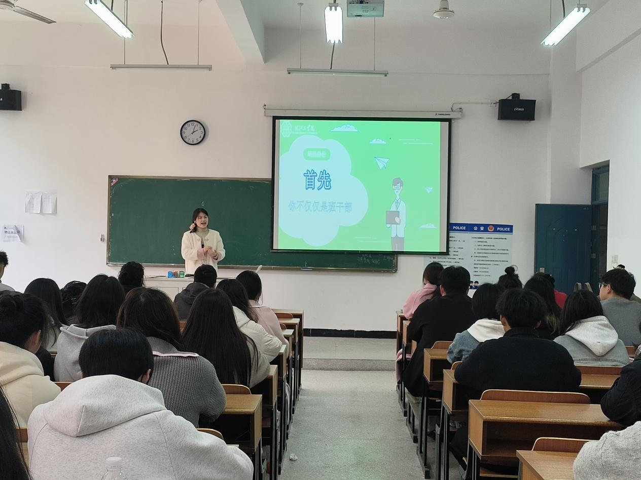 第二轮培训在新利体育在线官网首页登录入口开展,面向2023级全体学生干部,院分团委书记刘慧开展了以“躬身入局,挺膺担当”为主题的学生干部培训,围绕新时代青年的责任与担当、团的三会两制一课制度、主题团日活动等进行了分享。她提到,新时代青年负有重任,要树立自信自强、担当奋斗、团结一心、开放包容的使命担当。同时要明确“正直、奉献、合作、积极、宽容”的学生干部素质,在风华正茂的年纪不负时代、不负韶华,在青春的赛道上奋力奔跑。涂艳茹老师就校院两级学生干部组织架构,校院学生干部与班级学生干部如何形成合力共同加强优良学风建设做了专题报告。