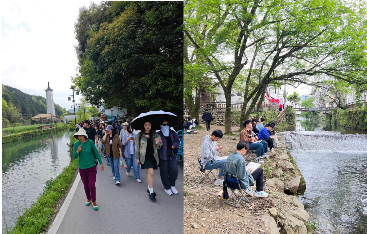 为提高我院学生的艺术素养和风景写生创作能力,艺术设计学院环境设计专业 109 名同学在环设教研室主任曹哲、专业教师张妍等的带领下,于 2024年 4 月 10 日-20 日到江西省上饶市婺源县沱川乡理坑古镇进行为期十天的写生教学实践活动。