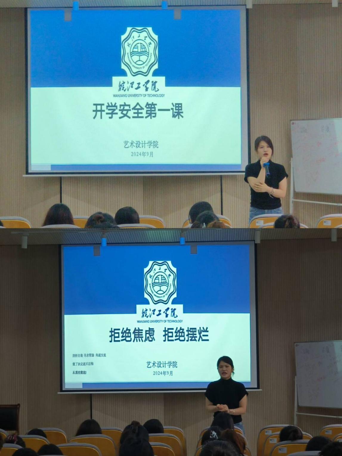 22级环境设计与数字媒体艺术专业辅导员刘慧以“开学安全第一课”为主题,重点强调了新学期的学习目标、纪律要求和安全注意事项。鼓励同学们在新的学期里要树立远大的理想,勤奋学习,积极进取,不断提升自己的综合素质。同时,也提醒同学们要严格遵守学校的规章制度,增强防诈骗意识,确保自身和他人的安全。并呼吁处在大三关键时期的同学们要“拒绝焦虑,拒绝摆烂”,积极与班主任交流沟通,参与各类学术活动,提升专业知识和实践能力,为顺利毕业做好提前准备。