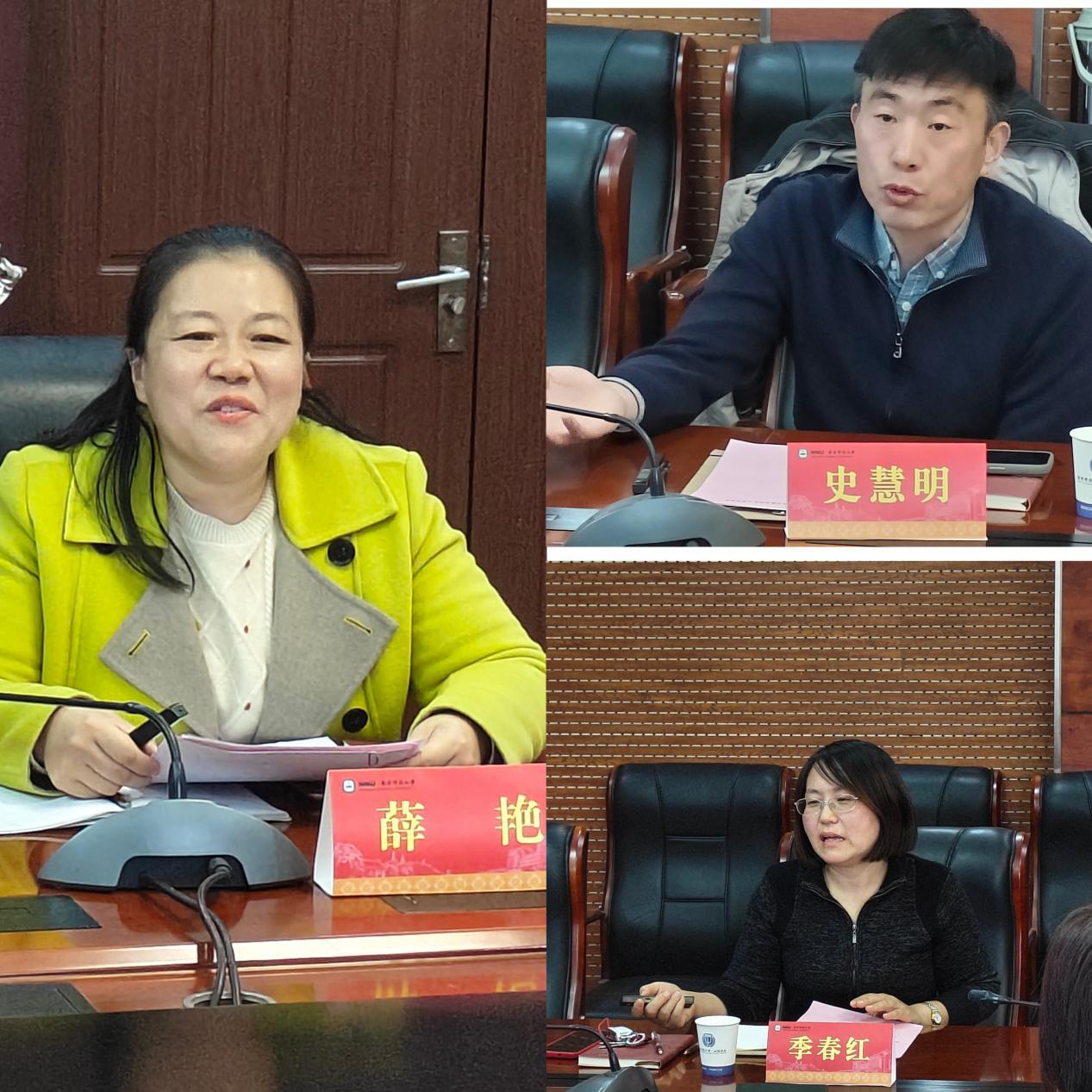 第一天的座谈会上,南京师范大学心理学院党委副书记薛艳、教育科学学院党委副书记史慧明、新闻传播学院党委副书记季春红热情接待了我院一行,双方分别介绍了各学院的基本情况和专业特色,并就学生的日常教育管理工作进行了分享与交流。
