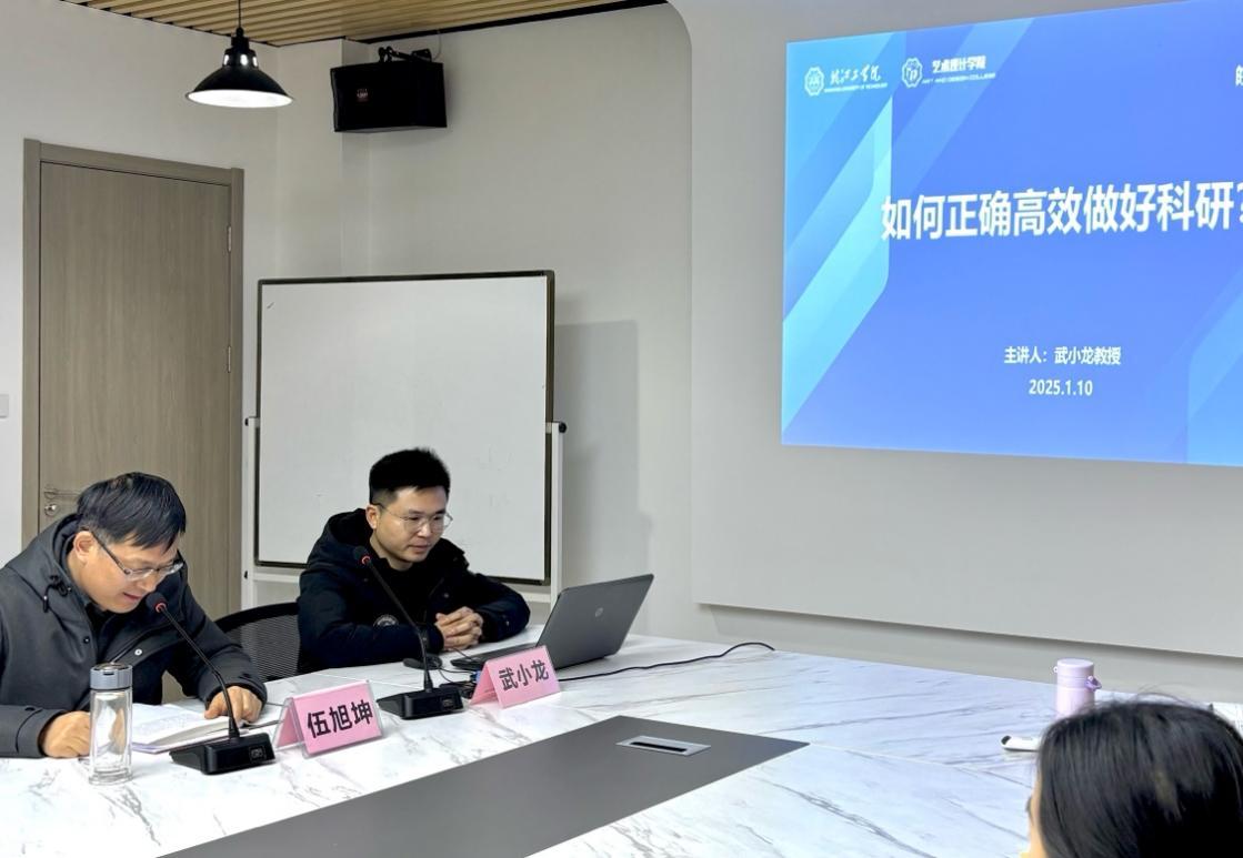 为提升艺术设计学院教师的科研能力和学术水平,2025年1月10日,在洪雅楼203会议室举行一场《如何正确高效做好科研?》高水平学术讲座。本次主讲人为南京航空航天大学人文与社会科学学院院长助理、教授、硕士生导师,澳大利亚墨尔本大学访问学者武小龙教授,讲座由伍旭坤院长主持,学院全体专任教师参会聆听。