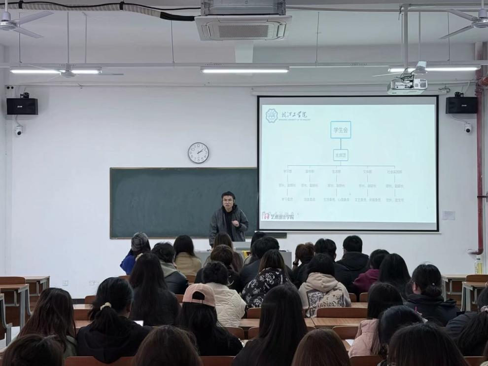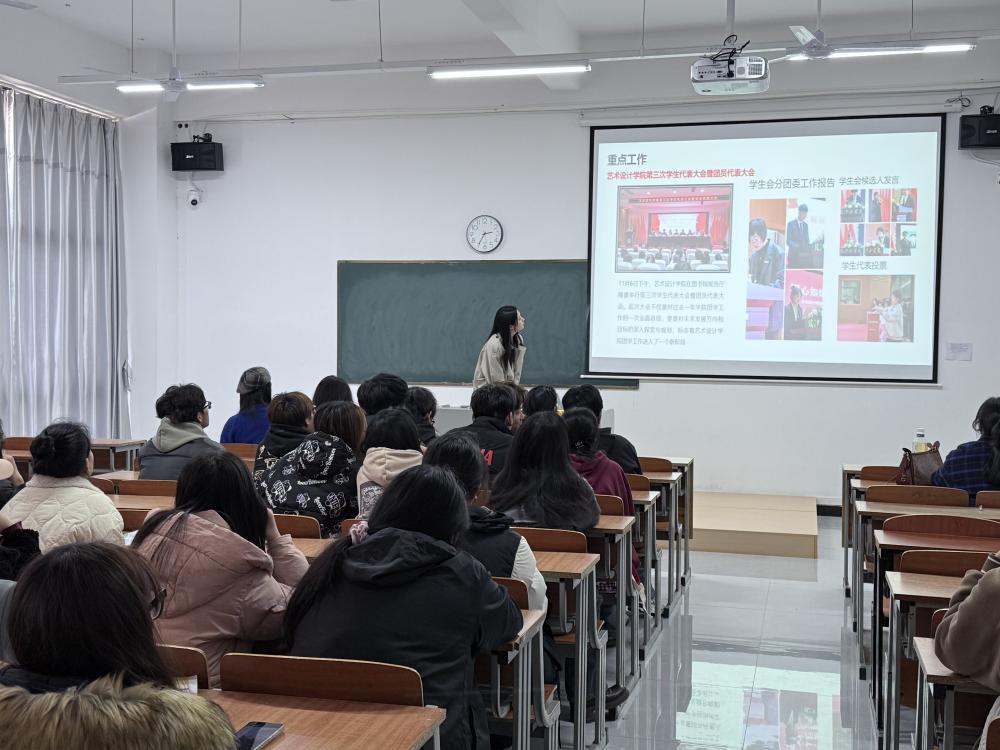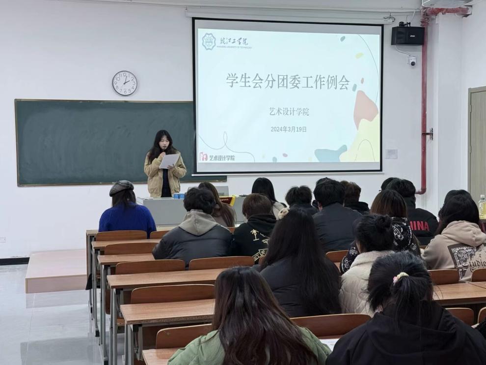 为做好迎接本科教学合格评估工作,强化学生干部责任担当意识,提升队伍综合素养,深化两校区协同联动,3月19日下午,艺术设计学院在郑蒲港F102组织召开了学生干部培训会,院分团委书记刘慧、学生分团委副书记曹佳、学生会主席团成员郭星月、祖磊与全体24级学生会分团委成员参加了本次会议。