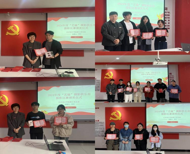 会议伊始,曹哲老师对到场师生表示热烈欢迎,并揭晓2024年度主题摄影大赛获奖名单。经专业评审,陈奕帆斩获一等奖,孙苏婉、赵彪获二等奖,曹佳、刘焕、张浩楠获三等奖,另有韩雨晴等6人获四等奖,张云梦等3人获优秀奖。与会老师为获奖同学颁发证书及奖品,并合影留念。